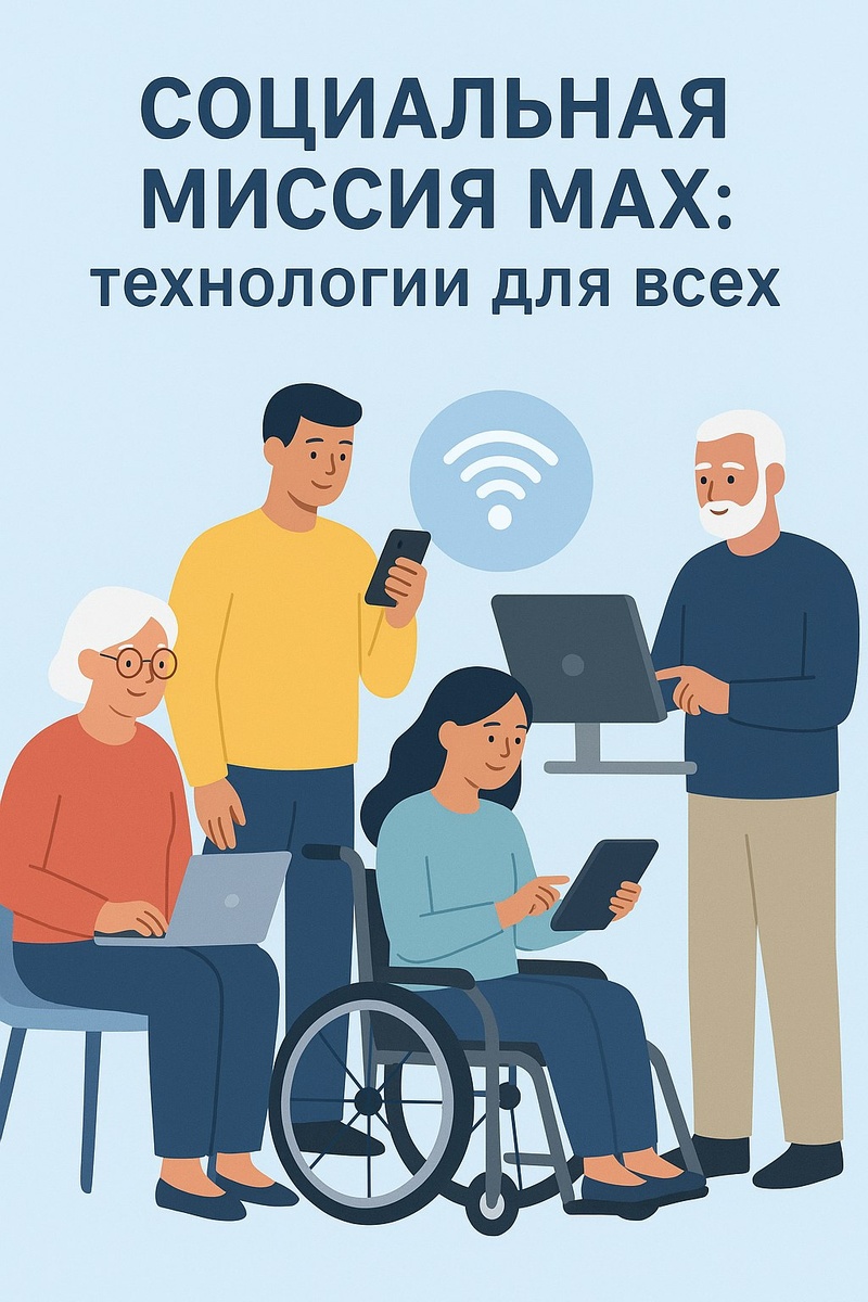 Социальная миссия MAX: технологии для всех Проект MAX — это не просто про инновации. Его главная цель — сделать современные технологии доступными каждому жителю, независимо от возраста, уровня цифровой подготовки или особенностей здоровья. МАХ создаёт доступную и комфортную среду для всех категорий населения, развиваем цифровую грамотность, проводим обучающие программы и делаем шаг навстречу тем, кто только знакомится с цифровым пространством. Технологии должны объединять людей — и MAX ежедневно работает над тем, чтобы это стало реальностью. MAX — когда технологии служат обществу.