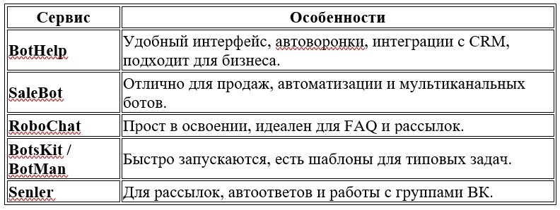 Обзор популярных сервисов и конструкторов чат‑ботов для ВК