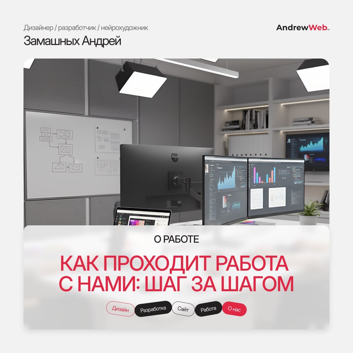 Как мы создаём сайты: просто, прозрачно и без хаоса 💡 Показали весь процесс — от заявки до запуска. Без магии и тумана — только реальные шаги, с которыми вы будете на связи на каждом этапе. Если давно хотели обновить сайт или запустить новый — этот пост точно поможет понять, чего ожидать 🤝✨ Сохраняйте и смотрите карусель ➜ #andrewwebnh #andrewwebstudio #созданиесайтов #вебдизайн #разработкасайтов #этапыработ #дизайнпроектов #uiux