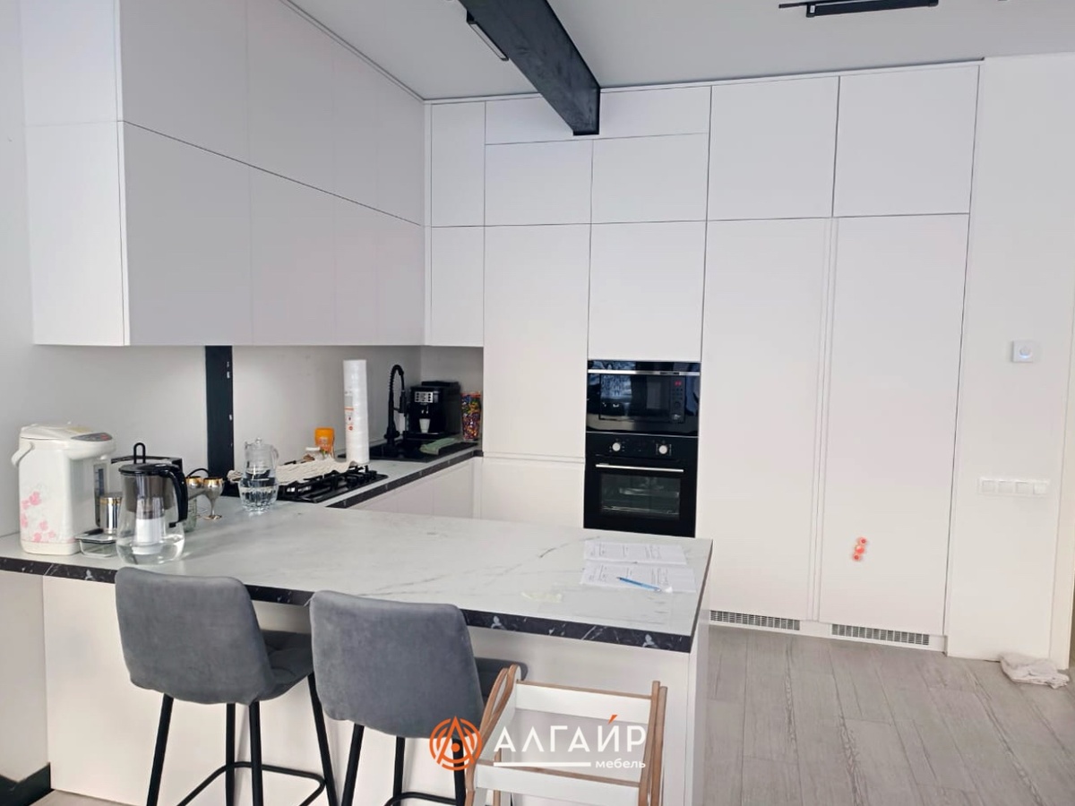 Конечно нет! Разве можно пресытиться тем, что стало настоящей классикой современного минимализма? Белый в интерьере не теряет актуальности, потому что именно он позволяет создать ощущение простора, чистоты и спокойной роскоши 🫰🏾 Наш новый проект — еще одно доказательство того, что продуманная геометрия, скрытые системы хранения и точная работа с пропорциями превращают лаконичность в идеальное пространство. 💌 Заказать свою идеальную кухню можно по ссылке у нашего менеджера!