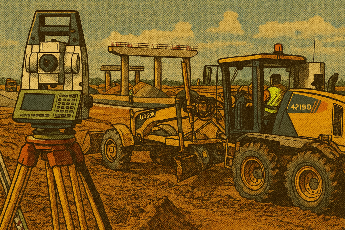 Строительство мостов – это вершина инженерного искусства, - проект, требующий не просто мастерства, а ювелирной точности и безотказного контроля. Мост — это не монолит, а сложная пространственная конструкция, состоящая из множества элементов: опор, ригелей, пролетных строений и балок. Главная проблема заключается в идеальной стыковке этих элементов, которые зачастую возводятся независимо друг от друга в сложных условиях. Строительство моста — это лишь половина дела. Его функциональность и долговечность напрямую зависят от качества подъездных дорог и подходов. Эти участки, соединяющие мостовое полотно с основной сетью, являются критическими зонами, где малейшие ошибки в профиле приводят к просадкам, неровностям и преждевременному разрушению. Именно здесь 3D-системы нивелирования становятся незаменимым инструментом, обеспечивая безупречное сопряжение дорожного покрытия с мостовыми конструкциями. Почему подъездные пути к мостам требуют особой? 1.Переменный уклон и кривизна: Часто подхо