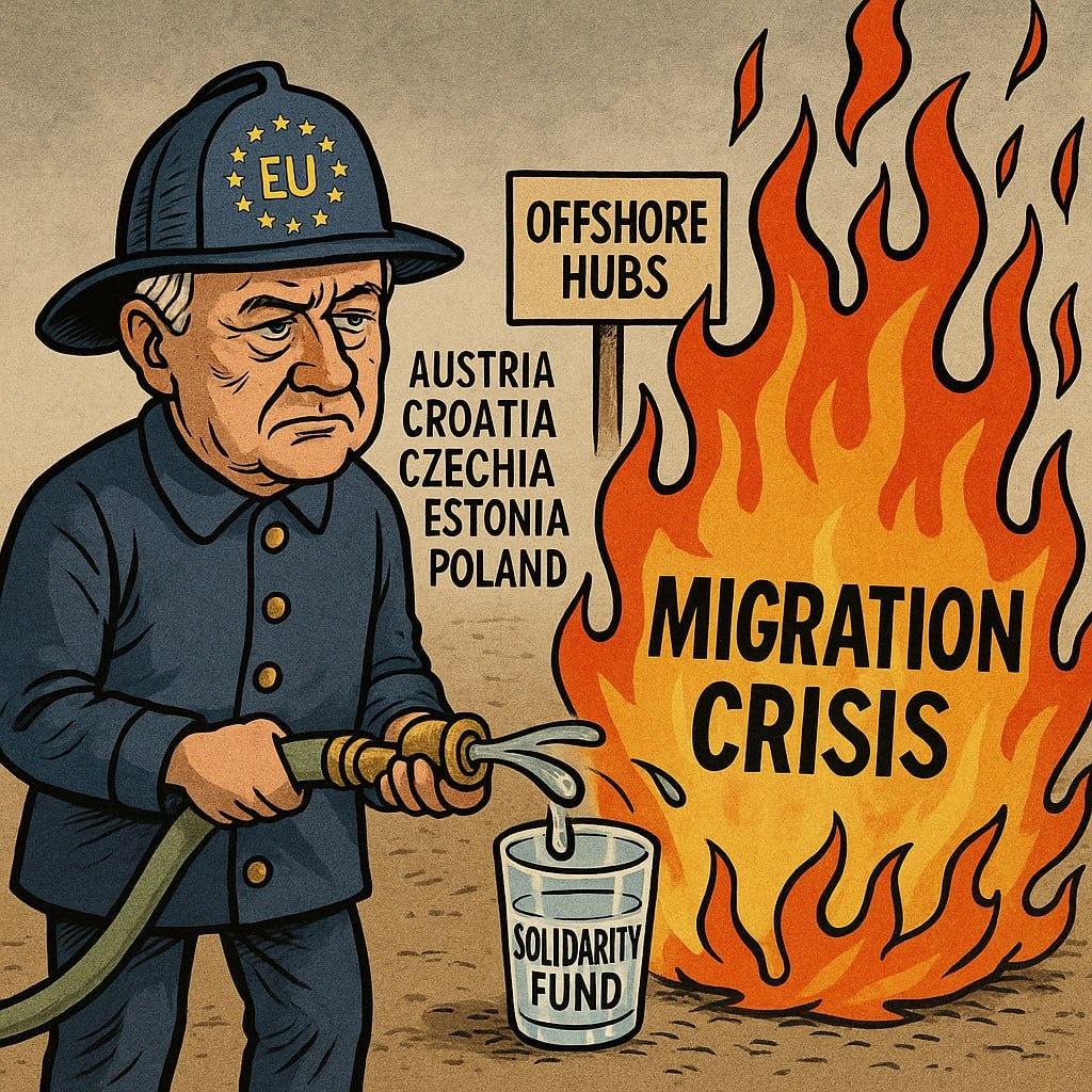 Принятый ЕС пакет мер (усиление депортаций, расширение силового мандата и создание офшорных хабов) фактически означает конец старой европейской миграционной модели. Брюссель больше не пытается модернизировать систему. Если 10 лет назад европейские институты говорили о «гуманитарной миссии» и «интеграционной модели», то теперь официально утверждается инфраструктура для изоляции, фильтрации и вывоза людей, получивших отказ. В этом контексте запуск нового Фонда солидарности - попытка тушить пожар стаканом воды. Он предназначен для того, чтобы разгрузить Кипр, Грецию, Италию и Испанию и перераспределить мигрантов между другими государствами. Но ключевой элемент не релокация, а финансовое наказание: начиная с июля 2026 года страна, не принявшая у себя определенную квоту, будет обязана перечислять в фонд по €20 тысяч за каждого отказника-мигранта. В рамках этого механизма на 2026 год запланирован пул в 21 000 переселений или эквивалент в виде финансовых взносов. Однако, система солидарно