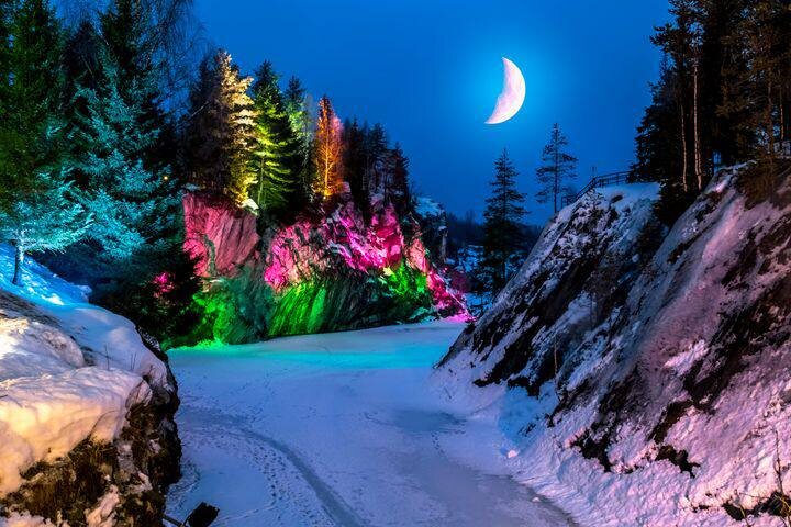 ⭐️ Наступает вечер и как раз в это время зимой включается красочная подсветка в Горном парке Рускеала. 🌙 Её можно увидеть ежедневно с наступлением темноты, примерно в 16:00-17:00, но время меняется в зависимости от того, насколько рано темнеет. 🚂 Хотите увидеть эту красоту своими глазами? Выбирайте удобный тур в Карелию с посещением парка. Заодно прокатитесь на роскошном ретропоезде «Рускеальский экспресс» и зарядитесь непередаваемыми впечатлениями и эмоциями! Ссылку на туры оставили здесь И не забудьте подписаться на наш Дзен, где вас ждет увлекательная информация о туристических круизах, размышления специалистов в области пассажирских перевозок, иные экспертные мнения, подробные описания экскурсионных программ, красивые фотографии и видео. Вся гамма наших туристических предложений — более 100 готовых туров — доступна для вас на сайте «РЖД Тур» 24/7. Мы в ВК, Дзен и Телеграмм.