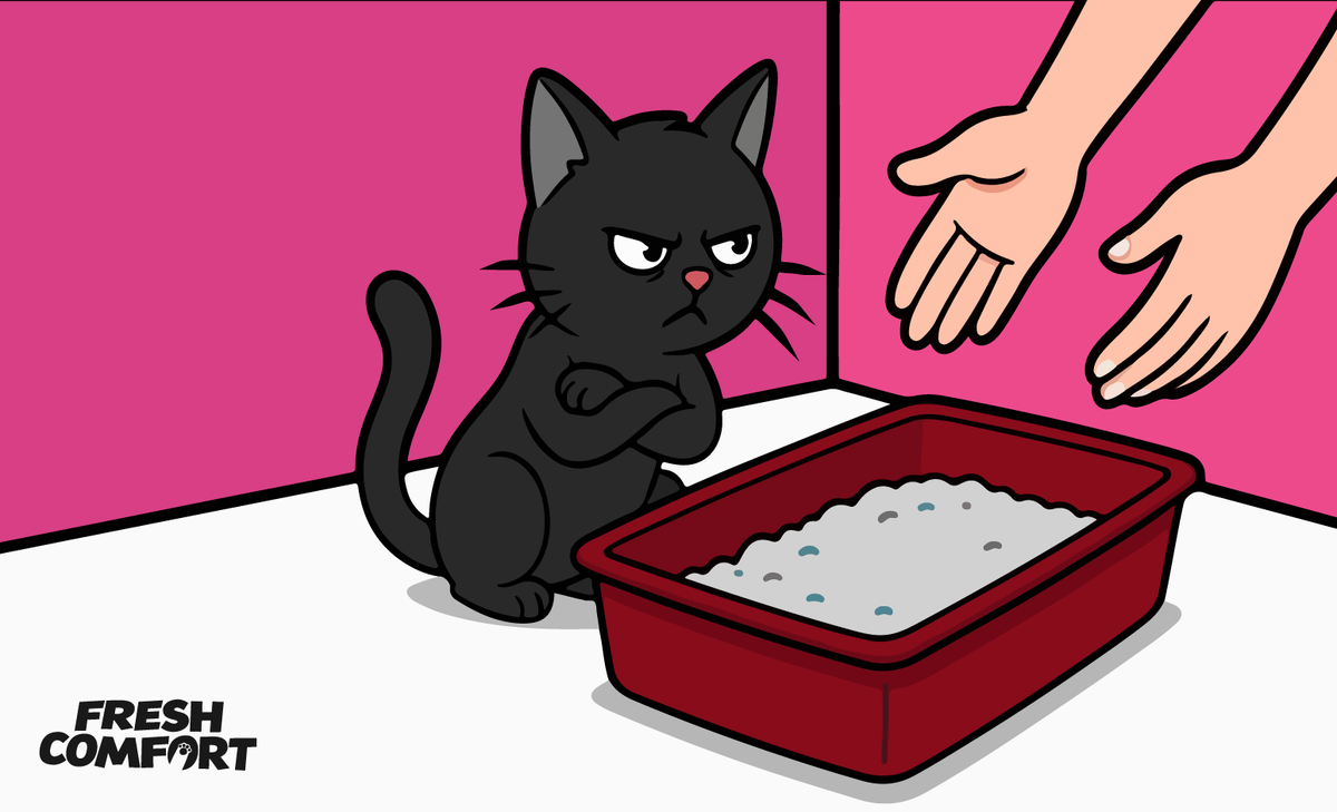 Привет, я кот Пирожок! Хочу рассказать, как сделать лоток по-настоящему притягательным для нас, котов. Правильный выбор лотка Во-первых, очень важно выбрать правильный лоток по размеру и глубине – он должен быть просторным, чтобы мне было удобно встать, повернуться и копать. Высокие бортики помогают удерживать наполнитель, но при этом вход в лоток должен быть удобным, особенно если кот молод или пожил. Лично я предпочитаю открытые лотки – в них лучше циркулирует воздух, и запахи не застаиваются. Верный наполнитель Не менее важен выбор наполнителя. Я люблю комкующиеся, потому что с ними легче справлять дела, а хозяевам – поддерживать чистоту. Наполнитель не должен иметь сильного запаха или пыли, чтобы дышалось комфортно. Поэтому лучший выбор – наполнители от Fresh Comfort. С ними проблем не бывает ни у котов, ни у хозяев. Оптимальная глубина слоя – примерно 5-7 см, чтобы я мог спокойно копать и закапывать свои «дела». Но самое главное – регулярная уборка. Убирать комочки и экскременты