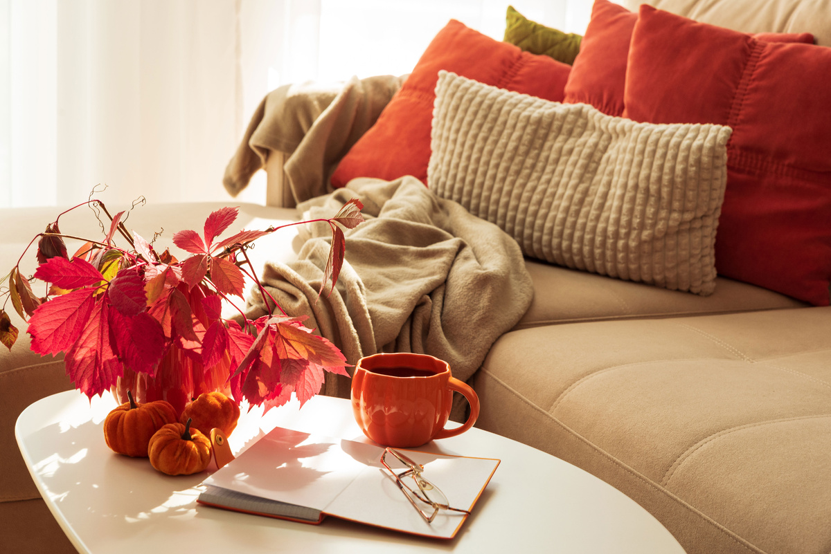 Такой подход создаёт глубину. Оттенки на мебели становятся теплее, текстиль выглядит богаче, а мягкие формы становятся более выразительными.