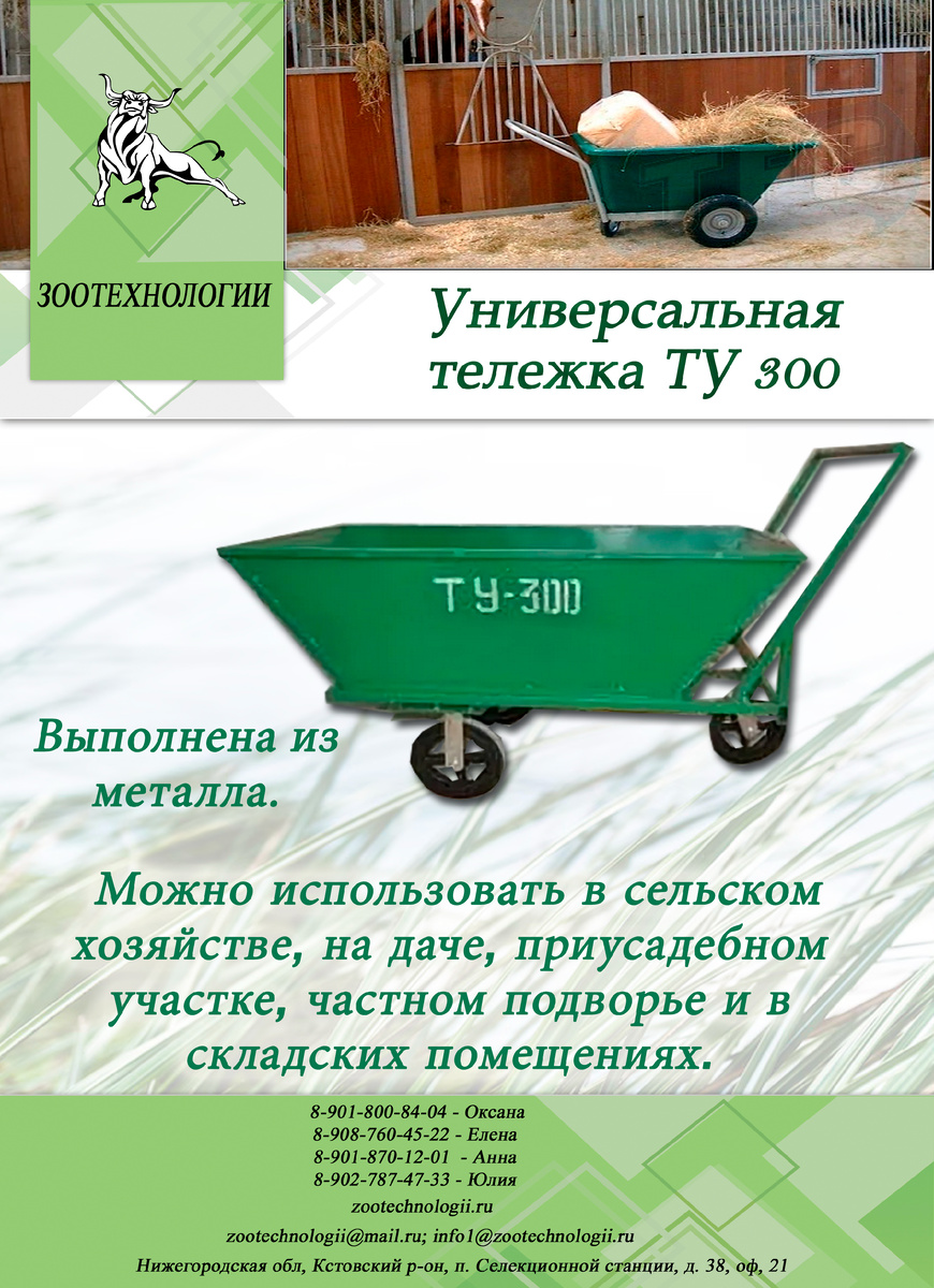 Добрый день. В продаже кормораздаточная тележка ТУ-300 с колёсами диаметром 250 мм, которая предназначена для транспортировки сухих и жидких кормов для животных на животноводческих фермах. Это корытообразная ёмкость на трёх обрезиненных колёсах. Некоторые особенности конструкции тележки ТУ-300: ✔️Поворотный блок для удобства управления. ✔️Съёмное корыто — позволяет трансформировать тележку в платформу для перевозки тяжёлых ёмкостей и других предметов, например фляг и бидонов с молоком на ферме. Оставить заявку можно у наших менеджеров: Оксана: 8-901-800-84-04 Елена : 8-908-760-45-22 Анна: 8-901-870-12-01 Юлия: 8-902-787-47-33 Читайте нас в Дзен✔️ #Тележка_кормораздаточная #ТУ300 #КРС