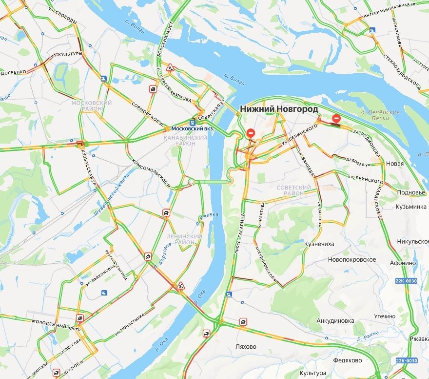 Серьезные пробки образовались в Нижнем Новгороде 10 декабря. Заторы на дорогах наблюдаются во всех районах. Об этом свидетельствуют данные сервиса «Яндекс. Пробки». В центре города движение затруднено на улицах Горького, Белинского, Родионова, Варварской. Ильинской, Новой, сенной площади и на Нижневолжской набережной в сторону Канавинского моста. Также пробка в несколько километров возникла на проспекте Гагарина начиная от деревни Ольгино. Затруднения также наблюдаются на улицах Ларина, Ванеева, Сусловой, 40 лет Октября, Анкудиновском и Казанском шоссе в верхней части города. В заречной части пробки образовались на улицах Новикова-Прибоя, Монастырке, Куйбышева. Керченской, Советской, Культуры, Коминтерна, Ярошенко, Коновалова, проспекте Ленина и Московском шоссе. Также стоит Мызинский мост в сторону Ленинского района. Ранее сообщалось, что пробки сковали новую объездную дорогу ан улице Родионова в первый же день после ее открытия. Самые интересные и срочные новости читайте в Telegram-к
