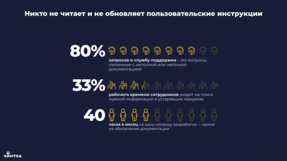 - Много времени уходит на поиск информации в длинных документах и инструкциях (до 20% рабочего времени).