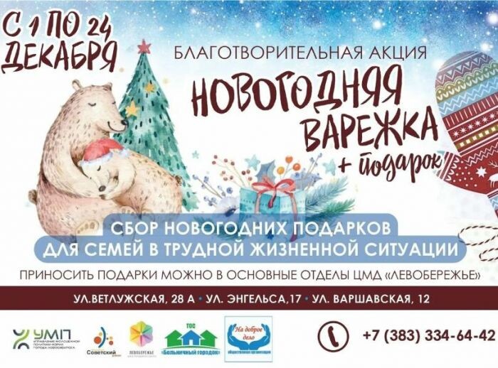 Благотворительная акция «Новогодняя варежка» снова пройдет в Советском районе Благотворительная акция по сбору подарков для детей из семей в трудных жизненных ситуациях состоится в Советском районе Новосибирска. Такие акции проходят уже 10 лет. https://academ.info/news/society/48978/