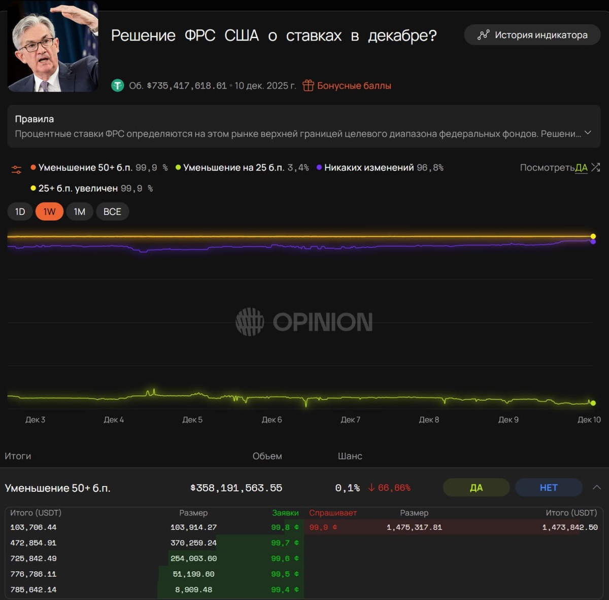 🔥 Opinion — прогнозный рынок нового поколения. Друзья, сейчас в крипте новый тренд — Prediction Markets (рынки прогнозов). Я решила протестировать платформу, чтобы показать вам, как она работает, какие возможности и риски есть, и как на этом можно потенциально заработать. 🤔 Изначально я рассматривала Polymarket или Kalshi, но у них в правилах прямо указано, что для пользователей из России возможны блокировка аккаунта и средств.❌ Тогда я наткнулась на Opinion — платформу с тем же принципом работы, которая официально не ограничивает российских пользователей. Документации или официальных правил о блокировках для РФ я не нашла, но стоит учитывать, что открыть платформу напрямую без VPN не получается — поэтому для подключения рекомендуется использовать безопасное VPN-соединение. А ещё за активность на платформе пользователи получают Points, которые, скорее всего, будут конвертированы в токены через будущий airdop. Чем активнее вы участвуете, тем выше шанс получить токены при запуске T