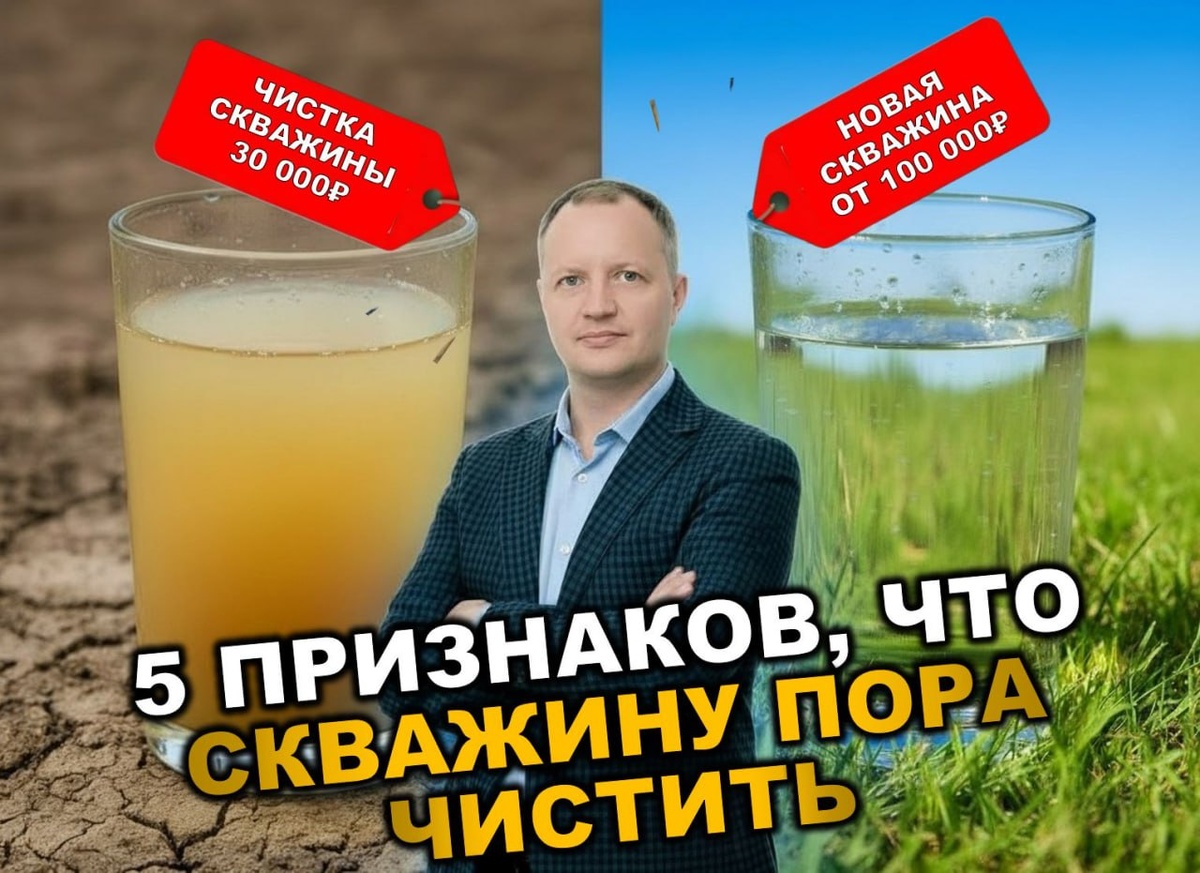✅ Ваша скважина "кричит" о помощи? Если видите ХОТЬ ОДИН из этих 5 признаков — пора действовать незамедлительно! 😱 ❌ 5 СИГНАЛОВ, КОТОРЫЕ ВИДЯТ ВЛАДЕЛЬЦЫ СВОИХ СКВАЖИН: 1️⃣ Мутная вода или песок в кране "Вода была чистая, а теперь МУТНАЯ?" Это значит: фильтры забиты, насос "ест" песок, ремонт выйдет дороже. 2️⃣ Падение напора — вода еле течет "Раньше душ был нормальный, а теперь едва капает?" Засор или износ насоса. Без чистки насос сгорит за 2–3 месяца. 3️⃣ Странный запах (железо, тухлое яйцо, болотный) "Вода пахнет металлом или хуже..." Бактерии размножаются в забитой скважине. Это уже опасно для здоровья. 4️⃣ Шум в насосе или он часто выключается "Насос гудит как трактор?" Песок/грязь убивают оборудование. Замена насоса = 15-30 тыс руб. 5️⃣ Железо/ржавчина на сантехнике и кранах "Все краны в ржавчине, стиралка в налете?" Высокое железо в воде. Без чистки вся техника выйдет из строя. ⚠️ ЧТО ПРОИСХОДИТ, ЕСЛИ ИГНОРИРОВАТЬ? САМАЯ ЧАСТАЯ ОШИБКА ДОМОВЛАДЕЛЬЦЕВ: "Подождем, само пройд