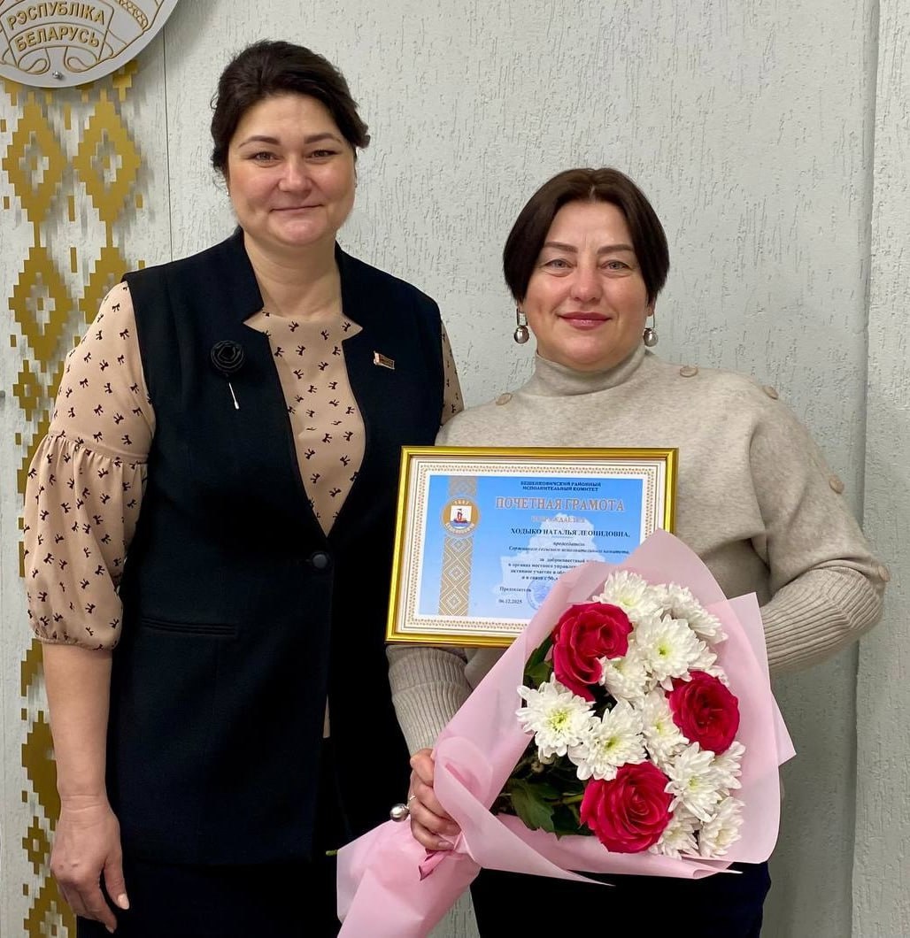 👏На днях юбилейный день рождения отметила председатель Соржицкого сельисполкома Наталья Ходыко ⚡️От имени актива района юбиляра поздравила председатель райисполкома Галина Унукович. 💐В адрес Натальи Леонидовны звучали слова благодарности за работу на благо сельчан и пожелания здоровья, неиссякаемой энергии и всех благ! 🤝За добросовестный труд в органах местного управления и самоуправления, активное участие в общественной жизни района и в связи с юбилеем Наталья Ходыко отмечена Почетной грамотой районного исполнительного комитета.