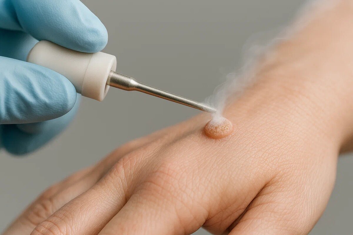 Самый распространённый метод в поликлиниках. Врач замораживает бородавку — через несколько дней она отпадает.