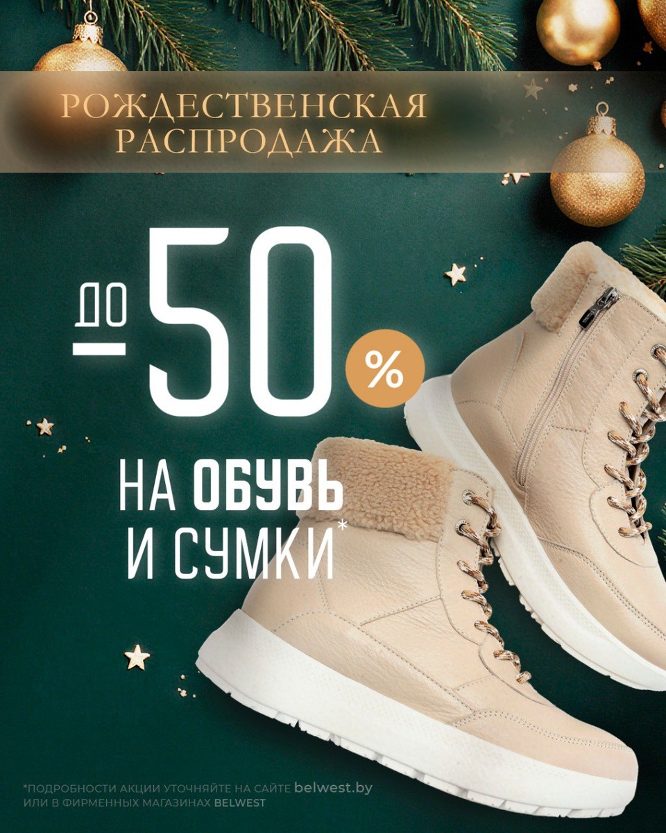 Рождественская распродажа в BELWEST 🛒🎄 Спешите за покупками на сайт belwest.com или в магазины вашего города. Там вы найдете много классных акций: ✨ скидки до 50% на зимнюю обувь ✨ скидки до 50% на утепленную обувь ✨ скидки до 50% на всесезонную обувь ✨ дополнительная скидка 10% на два товара в одном чеке ✨ скидки до 40% на сумки ✨ скидки до 50% на спортивную обувь ✨ скидки до 20% на тапочки