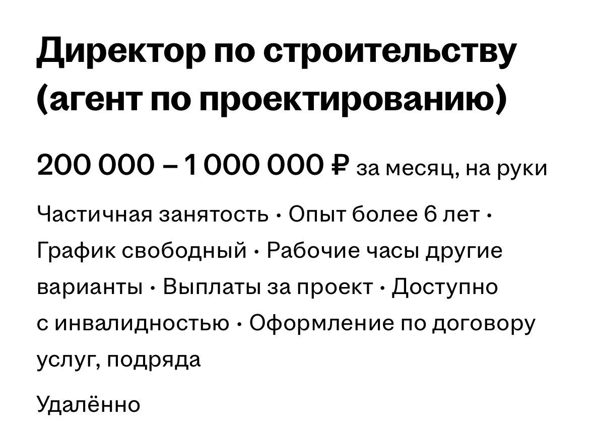 📰 Вакансии бывают разные Бывает юмор в описании: Ищут пожарные. Ищет милиция. Ищут фотографы нашей столицы… Бывают вакансии, которые сами больше похожи на шутку 😅 А бывает и вот такое — прислал один из моих подписчиков (клянется, что не откликался): Проектная организация — более 10 лет разрабатываем проектную и рабочую документацию для строительства, реконструкции и капитального ремонта объектов по всей России. Среди наших клиентов: X5 Retail Group, «Магнит», Московская биржа Ищем Партнёров по Агентскому договору для представления наших интересов в рамках проектирования в регионах на уровне своих объектов/проектов Формат сотрудничества: Агентский договор, по которому выплачивается достойное комиссионное вознаграждение за каждый привлеченный объект. Конфиденциальность Как это работает: Вы направляете нам краткую информацию об объекте (тип, площадь, стадия, сроки, при наличии – Техническое задание). Мы готовим предварительную оценку и пакет для заказчика (коммерческое предложени