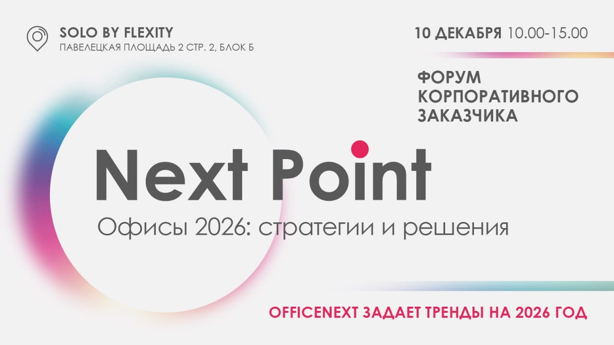 Next Point 2025 | Подводим итоги года и задаем тренды на 2026 уже сегодня Программа форума: 10:00 - 10:30 – начало регистрации посетителей и кофе-брейк 10:30 - 11:15 – «Офисная цифровизация и автоматизация. Практика госкорпорации и производственной компании» Спикеры: ▫️Гайк Папоян, «Национальный космический центр» им. В. В. Терешковой Госкорпорации «Роскосмос». «Центр Звёздный» ▫️Мария Ивановская, вице-президент по персоналу Grand Line ▫️Максим Неретин, Aurora Group Модератор: Михаил Каплун, CORE.XP 11:15 - 11:25 – кофе-брейк 11:25 - 12:10 – Дискуссия. «Офис как мультимедиа-платформа: как трансформируется оснащение бизнес-пространств в России 2025–2030» Участники: ▫️Дмитрий Хлопов, К2Тех | генеральный партнер ▫️Станислав Ануфриев, VK ▫️Алексей Макусов, Яндекс Модератор: Михаил Каплун, CORE.XP 12:10 – 12:30 – кофе-брейк 12:30 – 14:00 – «Новый офисный продукт. В чем нерв, драйв и новые подходы?» Спикеры: ▫️Владимир Рафаелян, РУССКИЙ АЛЮМИНИЙ Менеджмент ▫️Алексей Санду, бюр