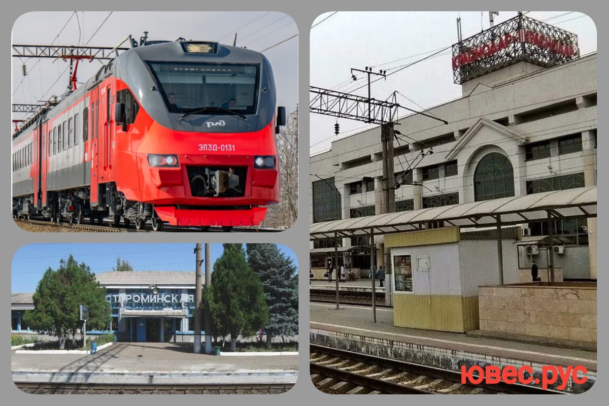 Временно изменится расписание электропоезда Краснодар - Староминская По техническим причинам РЖД изменил график движения нескольких пригородных поездов. Изменения касаются декабря. Поезд №6702 Краснодар-1 — Староминская-Тимашевская. Действует 9, 11 и 15 декабря. Краснодар-1 — 08:47 (на 40 минут раньше); Краснодар-2 — 09:03–09:06 (на 40 минут раньше); Тимашевская — 10:25–10:55 (прибытие на 40 минут раньше, отправление на 25 минут раньше); Каневская — 11:42–11:46 (на 22 минуты раньше); Староминская-Тимашевская — 12:34 (на 15 минут раньше). Поезд №6707 Тимашевская — Краснодар-1. Действует 12 декабря. Тимашевская — 12:40 (на 10 минут раньше); Ведмидивка — 13:12–13:29; Мышастовка — 13:42–13:43 (прибытие на 10 минут раньше, отправление на 6 минут позже); Титаровка — 13:52–13:53 (на 6 минут позже); Краснодар-2 — 14:21–14:22 (на 6 минут позже); Краснодар-1 — 14:39 (на 6 минут позже). Поезд №6710 Краснодар-1 — Тимашевская. Действует с 8 по 18 декабря. Отправление из Краснодара в 20:41. До с