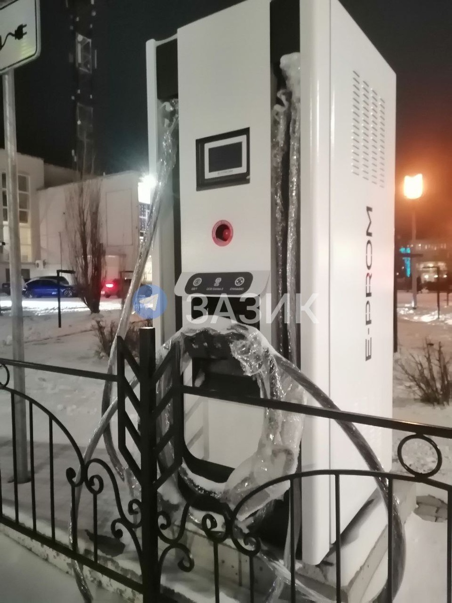 🤍Подписчик сообщил, что в 3-м микрорайоне Заозёрного, у сквера Мальцева, появилась первая в районе станция быстрой зарядки электромобилей. Колонка изготовлена компанией E-prom.