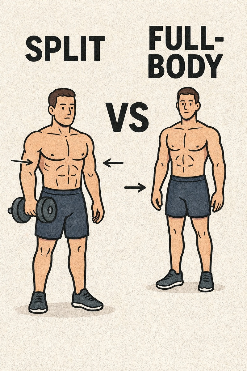 После первой эйфории от покупки абонемента возникает главный практический вопрос: Как построить свой тренировочный процесс? Существует как минимум два диаметрально противоположных подхода, сплит-тренировки (раздельные, на разные группы мышц) и фулбоди (тренировки на всё тело). Информации много, мнений ещё больше, а истина как водится где-то посередине. Что такое Фулбоди (Full Body)? Фулбоди- это тип тренировки при котором за одно занятие прорабатываются все основные мышечные группы. Частота 2-3 раза в неделю. На каждой тренировке выполняется по 1-2 базовых (многосуставных) упражнения на крупные мышечные группы. К примеру приседания, жим штанги лёжа, тяга штанги в наклоне, подтягивания. При этом мышцы получают умеренную но регулярную нагрузку, успевая восстановиться к следующей сессии. Что такое Сплит (Split Training)? Сплит- это разделение тренировок по мышечным группам в разные дни недели. В общем-то это самый распространённый тип тренировок. Частота может быть от 3 вплоть до 7 раз в