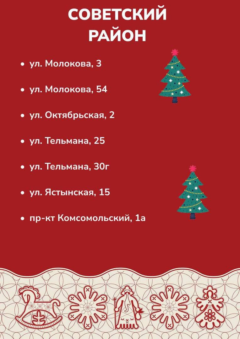 ▶️ В Центральном районе с 10 декабря откроются елочные базары В Кировском, Ленинском, Свердловском и Октябрьском районах торговля начнется с 15 декабря. В Советском районе базары заработают с 16 декабря, а в Железнодорожном — с 20 декабря. Адреса всех точек опубликованы на официальном портале мэрии.