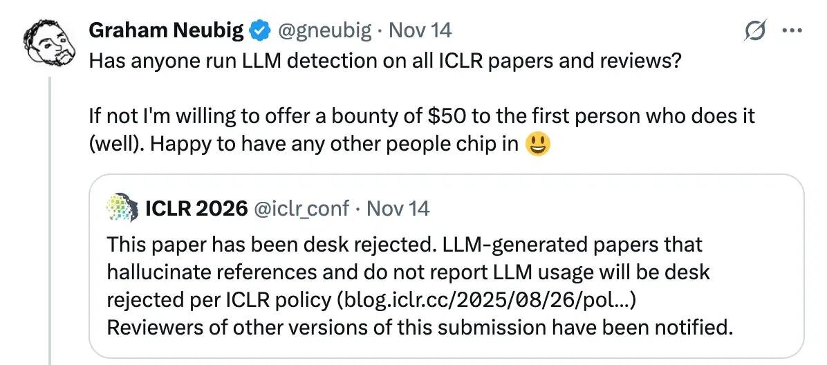в продолжение обсуждения ICLR: не знаю, кто это начал, может быть это был Грэхэм Ньюбиг (1 картинка), но люди из Pangram Labs засучили