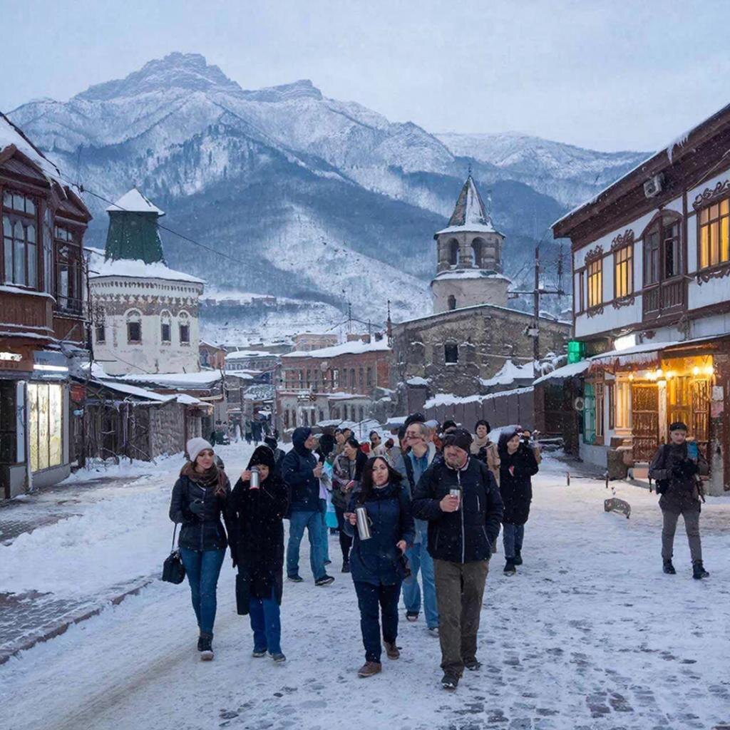 - Безопасно ли гулять по Владикавказу зимой вечером? Центр города безопасен для прогулок, хорошо освещён и патрулируется. Основные туристические маршруты — проспект Мира и набережная — комфортны для посещения до позднего вечера.