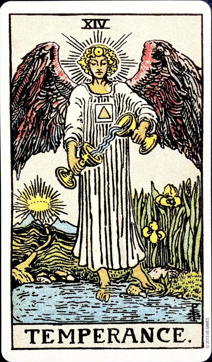 Дорогие искатели истин, вы когда-нибудь замечали, как в самый хаотичный момент жизни вдруг вспыхивает странное чувство покоя - будто невидимая рука мягко удерживает вас от пропасти? Возможно, это не случайность, а знак… Аркан №14 - Умеренность - редко громко заявляет о себе, но всегда приходит вовремя. В мире, где все кричат, спешат и требуют крайностей, эта карта напоминает: истинная мудрость - не в выборе «или», а в умении соединять «и». Сегодня мы заглянем в сокровенные слои этой загадочной карты колоды Уэйта и раскроем, почему она - одна из самых недооценённых, но мощнейших карт в таро. На карте изображён ангел - не с крыльями воина, но с кротостью целителя. Он стоит на берегу озера, одна нога в воде, другая - на земле, символизируя гармонию между эмоциями и разумом, материей и духом. В руках ангел держит два кубка: из одного льётся вода в другой, не разбрызгиваясь, не теряя ни капли. Это - алхимический процесс внутреннего слияния, где противоположности не борются, а сливаются во