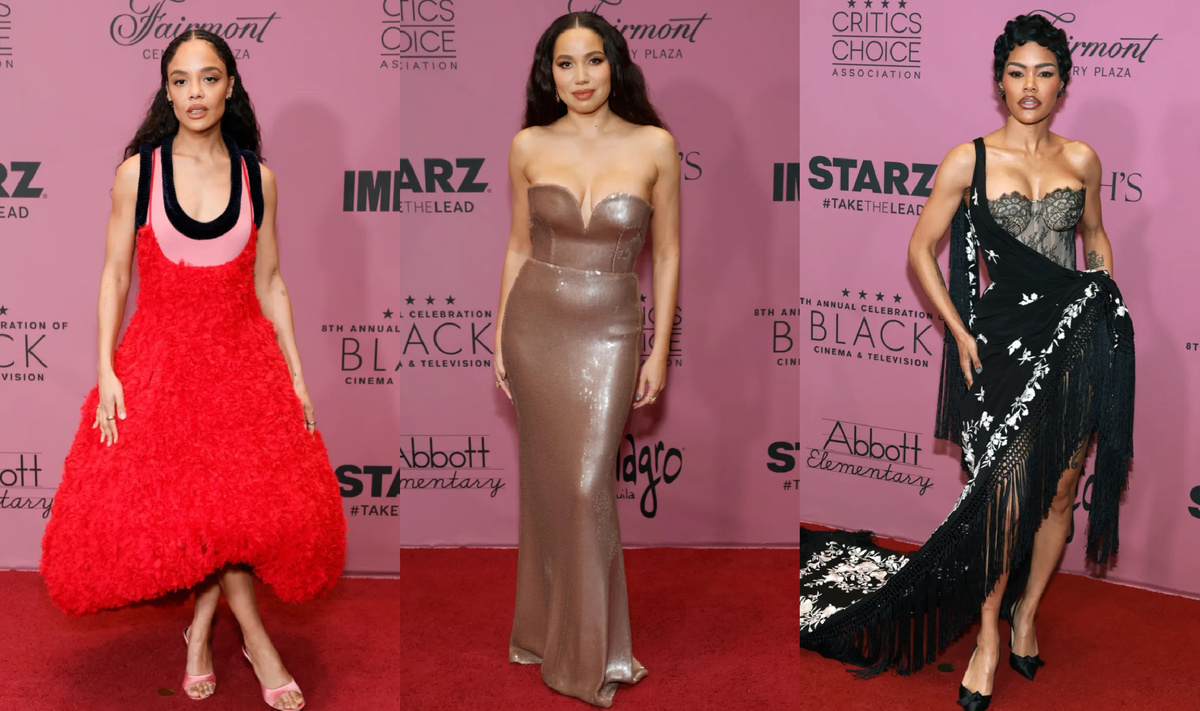 В Лос-Анджелесе, в пространстве легендарного Fairmont Century Plaza, прошёл восьмой ежегодный вечер Black Cinema & Television. Эта красная дорожка стала точной иллюстрацией того, как мода сегодня умеет говорить о силе, индивидуальности и визуальном характере. Тесса Томпсон в Diotima SS26 Алое платье с объёмной, почти скульптурной фактурой и контрастным верхом в чёрно-розовой гамме. Образ сложный, экспериментальный, с ощущением подиумного арт-объекта, перенесённого на красную дорожку. Чейз Инфинити в Christopher John Rogers FW25 Архитектурный костюм с подчёркнутой талией и выразительной линией плеч. Металлический блеск ткани усиливает сценичность и создаёт эффект строгой, выверенной драмы. Теяна Тейлор в Nicholas Oakwell Couture Чёрное платье с корсетным верхом, вышивкой и длинной бахромой. Это образ, который работает в движении, создавая ощущение кинематографической героини. Райан Дестини в Ferrari SS26 Сияющее лаконичное платье с чёткой линией декольте. Минимализм, построенн