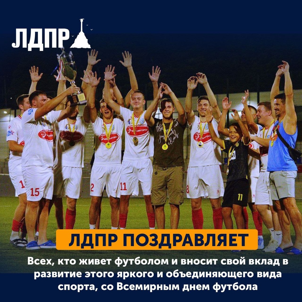 ЛДПР поздравляет со Всемирным днем футбола Севастопольское отделение ЛДПР поздравляет всех, кто живет футболом и вносит свой вклад в развитие этого яркого и объединяющего вида спорта, со Всемирным днем футбола. Этот праздник объединяет игроков и тренеров, арбитров и организаторов, ветеранов спорта и юных спортсменов, а также болельщиков, которые создают неповторимую атмосферу на каждом матче. Футбол давно стал частью культурной и спортивной жизни Севастополя. Городское отделение неоднократно участвовало в организации и проведении городских футбольных турниров, поддерживая инициативы, направленные на развитие спорта и укрепление здорового образа жизни. Команда ЛДПР принимала участие и в региональных, и во федеральных спортивных мероприятиях, достойно представляя Севастополь и демонстрируя настоящий командный дух. Желаем всем, кто связан с футболом, новых побед, ярких эмоций, крепкого здоровья и уверенного движения вперед. Пусть спортивные традиции города продолжают развиваться, вдох