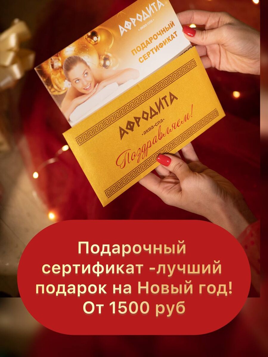 ✨ Новый год — время чудес и особенных подарков! ✨🎁🎄 Хотите подарить не просто вещь, а настоящие эмоции и заботу? Подарочный сертификат от спа‑центра «Афродита» — идеальный выбор для тех, кого вы искренне любите! 🎁 Почему наш сертификат — особенный подарок? 🌟 Универсальность. Подходит для любого человека: мамы, подруги, второй половинки или коллеги. 🌟Свобода выбора. Получатель сам решит, какую процедуру пройти — никаких ограничений! 🌟Практичность. Номиналы на любой бюджет: 1 500, 2 000, 3 000, 5 000 руб. или любая другая сумма. 🌟Долгоиграющий эффект. Впечатления от спа‑процедур остаются в памяти надолго — гораздо дольше, чем от обычных подарков. 💫 На что можно потратить сертификат? Ваш близкий человек сможет выбрать любую услугу из нашего широкого спектра: 🌟 роскошные спа‑программы для лица и тела; 🌟расслабляющие и тонизирующие массажи; 🌟стильные парикмахерские услуги; 🌟безупречный ногтевой сервис; 🌟профессиональную косметику из нашего ассортимента. ❤️ Подарите не п