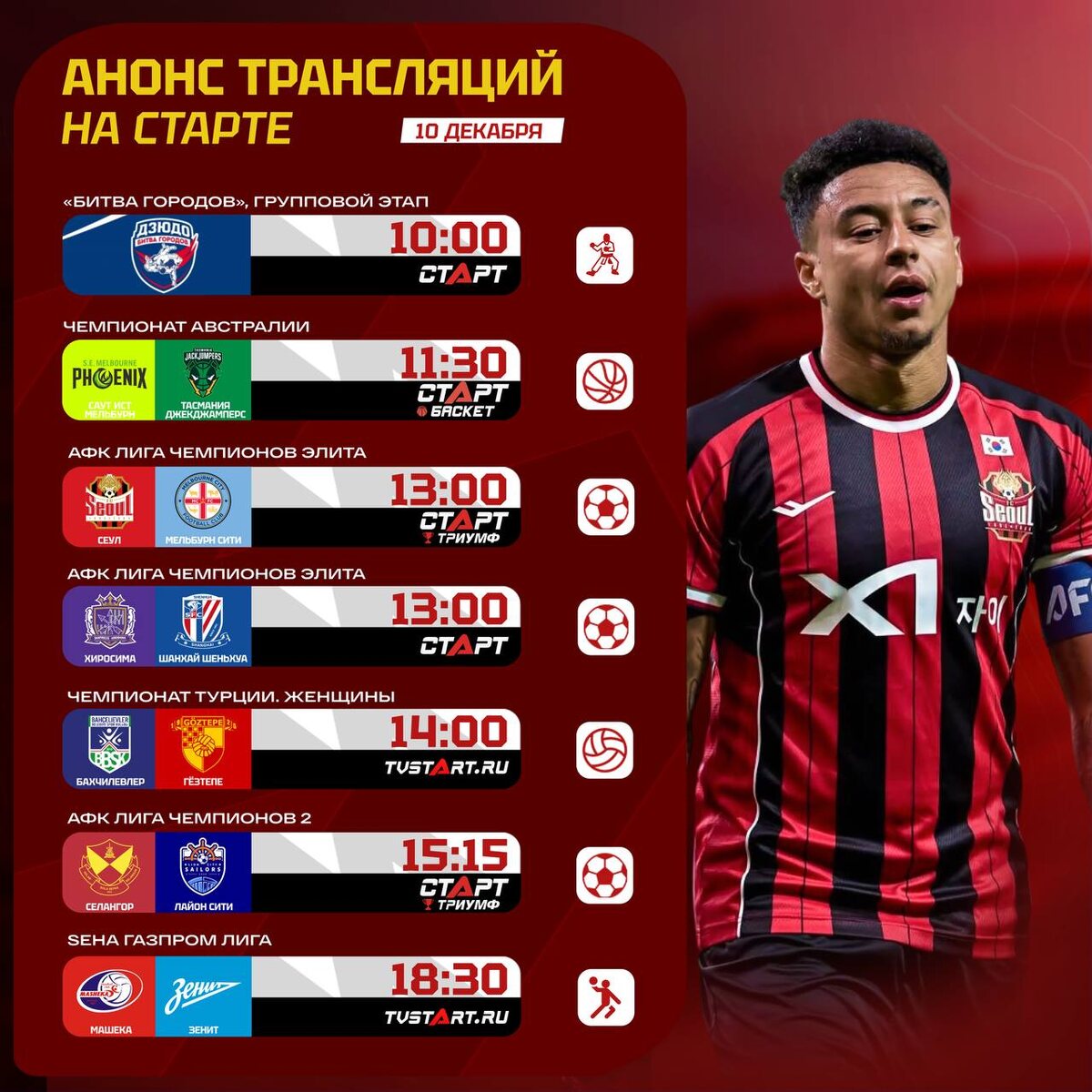 🔥 Очень насыщенная среда на ТВ СТАРТ! Игры АФК Лиги Чемпионов Элиты, четвертьфиналы на ЧМ по женскому гандболу и топовые матчи в евротурнирах по волейболу и баскетболу! Что планируете смотреть? 🔍 🛒 Наше приложение в Google Play 💙 Наше приложение в RuStore 🛒 Наше приложение в App Store