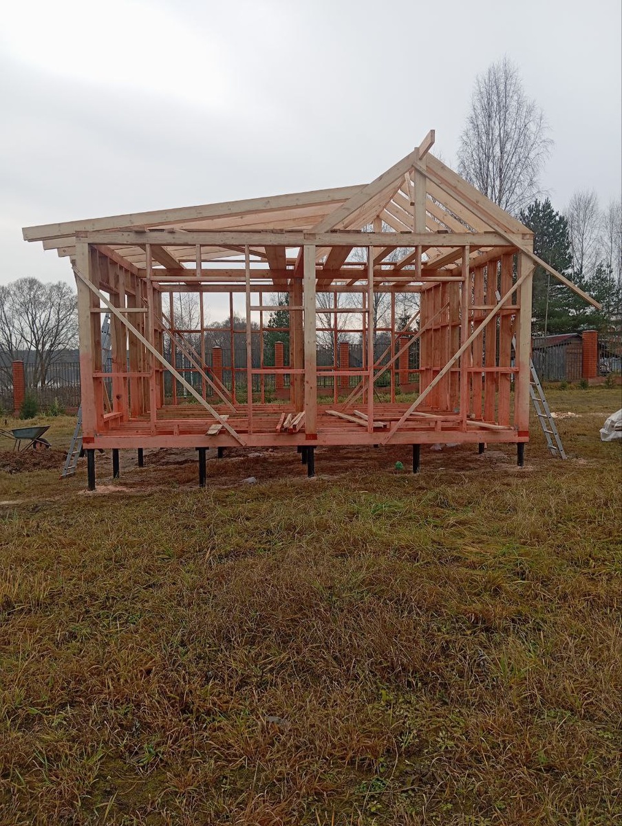 1 декабря начали строить баню. Двое строителей из соседней деревни за неделю поставили каркас.