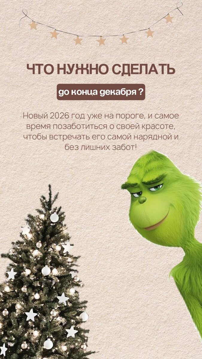 ЧТО НУЖНО СДЕЛАТЬ ДО КОНЦА ДЕКАБРЯ? 😳 // мы подготовили список обязательных дел на этот месяц: маникюр/педикюр, уход за волосами, оформление бровей и конечно же, наращивание или ламинирование ресничек, и вуаля, ты готова к празднику! 🥂