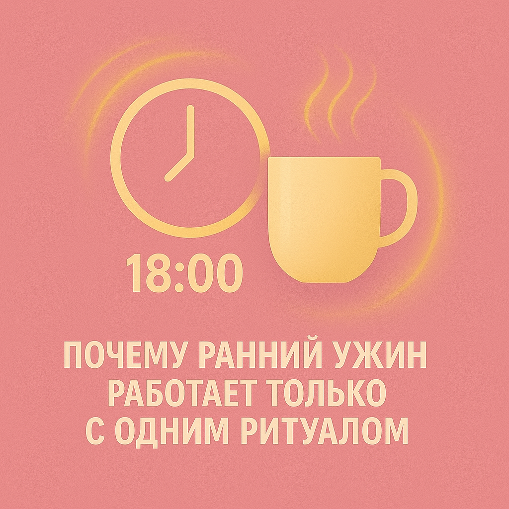 Настоящее действие даёт то, что ты делаешь ПЕРЕД сном». И эта маленькая практика меняет тело куда сильнее, чем ранний ужин. Сегодня расскажу, что именно происходит в организме, когда после 18:00 нет еды —и как одна простая вещь перед сном запускает восстановление, гормональный баланс и спокойное утро. Почему ужин после 18:00 так сильно влияет на женское тело Это не диета и не «жёсткое правило».