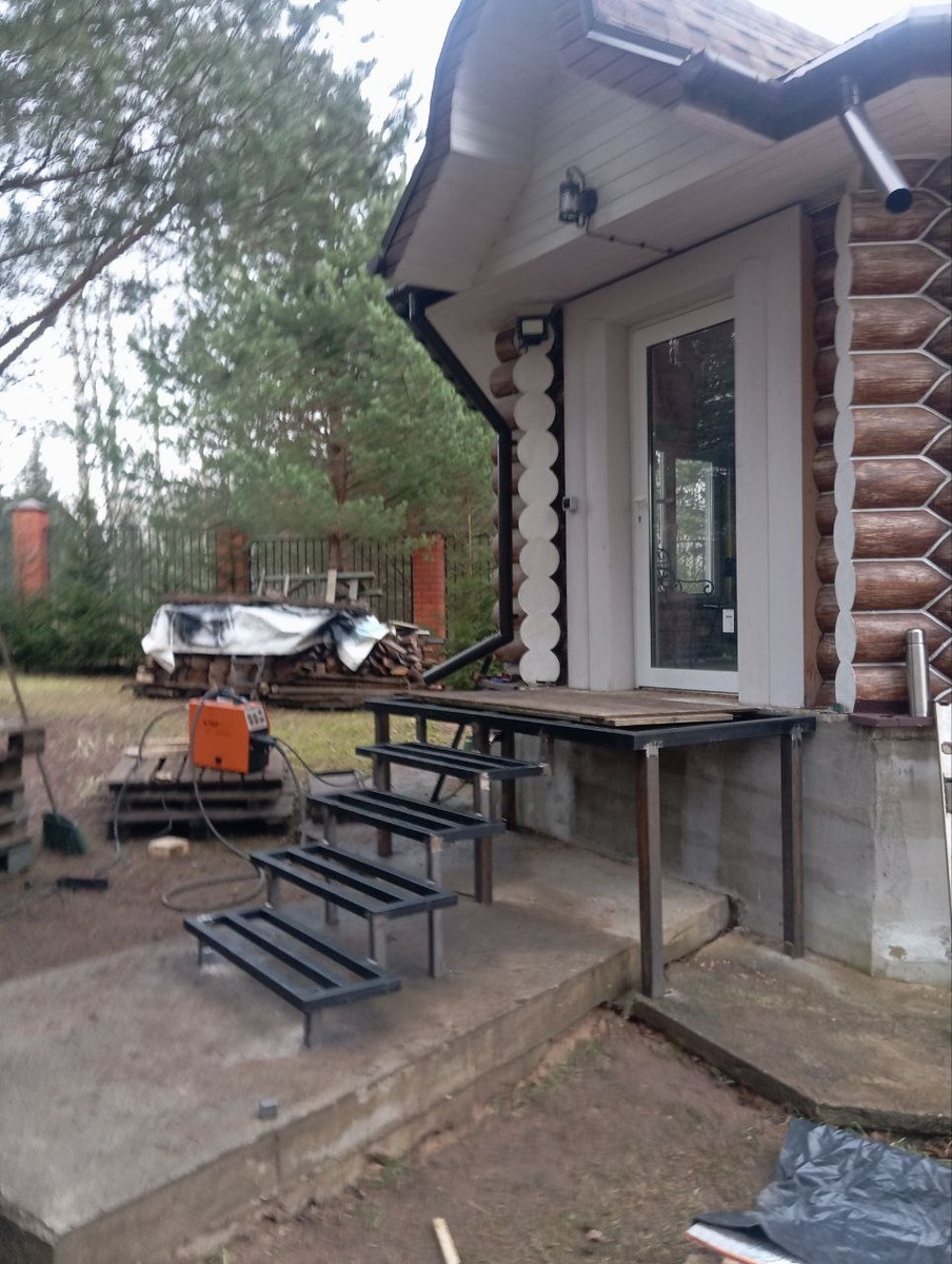 Наконец то дошло дело до крыльца в беседку. Не могла долго определится с материалом. Хотела камень потом поняла, что утежелять не надо. До Нового года мастер обещал сделать.