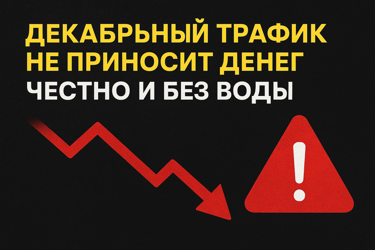 Декабрьный трафик не приносит денег — потому что вы платите за иллюзию активности, а не за деньги в кассе. Кажется, декабрь — это волшебство: трафик растёт, отчёты горят зелёным. По факту — тысячи кликов, брошенные корзины и сотни потраченных рублей на пустоту. Проблема не в площадках и не в алгоритмах. Проблема в том, что вы рекламируете обещание, которое не способны исполнить. Клиент в декабре торопится. Он не тестирует варианты — он решает «взял / не взял» за минуты. Если путь от клика до оплаты занимает часы или дни — вы просто платите за чужую аудиторию. Часто вижу одну и ту же модель краха: запускают креативы, увеличивают бюджет, ждут роста выручки. Через неделю — удивление: «много лидов, ноль оплат». Почему? Потому что воронка и обещания не подготовлены к пиковому спросу. Разрушим ожидание: дешёвые клики — не проблема. Проблема — когда клики не идут в продажи. Лучше запускать на узкие сегменты с высокой вероятностью покупки, чем заливать бюджет вслепую. Из практики: ресторан з