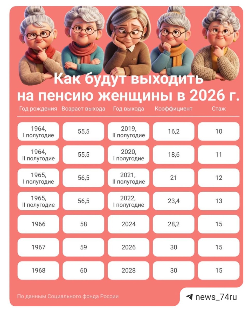 Как изменится пенсионный возраст с 1 января 2026 года и кто будет выходить на пенсию позже В наступающем году российское пенсионное законодательство вступит в предпоследнюю фазу изменений. Речь о продолжении реформы, запущенной в 2019 году: мужчины получат право на страховую пенсию в 64 года, женщины — в 59 лет. К 2028 году возраст выхода на пенсию придет к финальному значению — 65 лет для мужчин и 60 лет для женщин. Поправки затронут и начисление социальной пенсии по старости для тех, кто не набрал нужного стажа. Раньше ее получали женщины с 60 лет и мужчины с 65, но с 2026 года оформить ее смогут женщины в 64 года и мужчины в 69 лет. Для назначения выплаты в 2026 году по-прежнему потребуется подтвердить минимум 15 лет страхового стажа и иметь не менее 30 пенсионных баллов. Сумму пенсий будут рассчитывать, сложив установленные государством выплаты и накопленные баллы. Например, на пенсию выйдут женщины 1967 года рождения и мужчины 1962 года рождения, которые набрали стаж и баллы. А