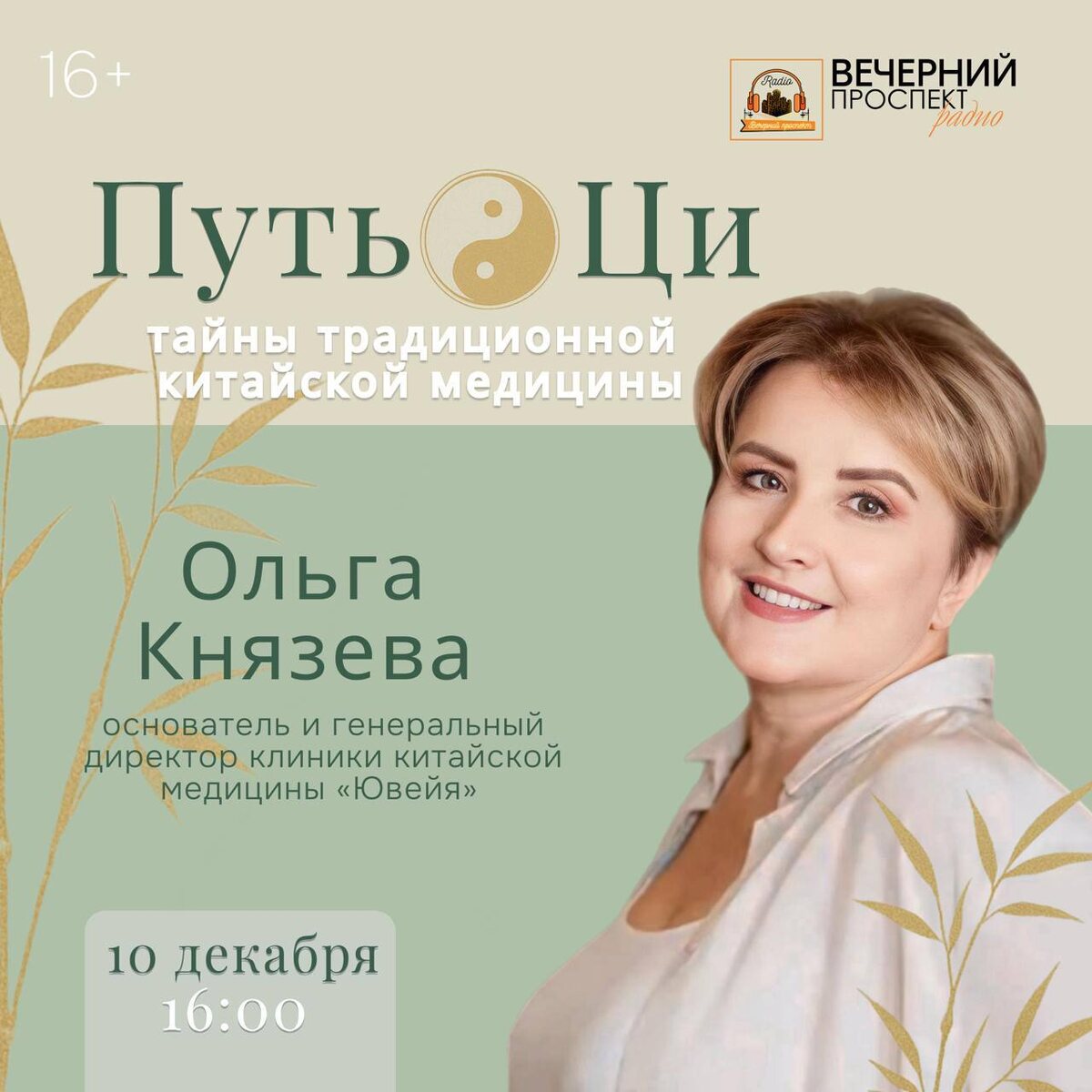 Приглашаю на прямой эфир: 📅 10 декабря 2025 года 📡 Прямой эфир с 16:00 до 17:00 В новом выпуске программы «ПУТЬ ЦИ: Тайны традиционной китайской медицины» вместе с основателем клиники «Ювейя» Ольгой Князевой поговорим о корнях традиционной китайской медицины, её основных принципах и философии, а также о том, как древние знания помогают сохранять здоровье в современном мире. В эфире: ⁃ Что такое Ци — жизненная энергия и как она влияет на наше здоровье ⁃ Легенды Инь и Ян, философия баланса и гармонии в организме ⁃ Теория пяти элементов и её значение в диагностике и лечении заболеваний ⁃ История распространения акупунктуры на Западе и реальные примеры лечения ⁃ Практические рекомендации по питанию и упражнениям для восстановления энергии 🔴 Смотрите прямой эфир на сайте www.radio-vprospekt.ru 📲 Приложение «Вечерний Проспект» доступно в App Store и RuStore — скачивайте прямо сейчас! 📩 Задавайте вопросы и делитесь мнением в WhatsApp: 8 (985) 171-69-33