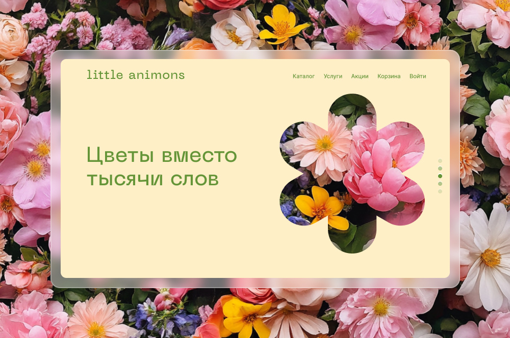 Создайте яркое первое впечатление с помощью качественных фотографий букетов. Разместите популярные товары, информацию о компании и ключевые преимущества.
