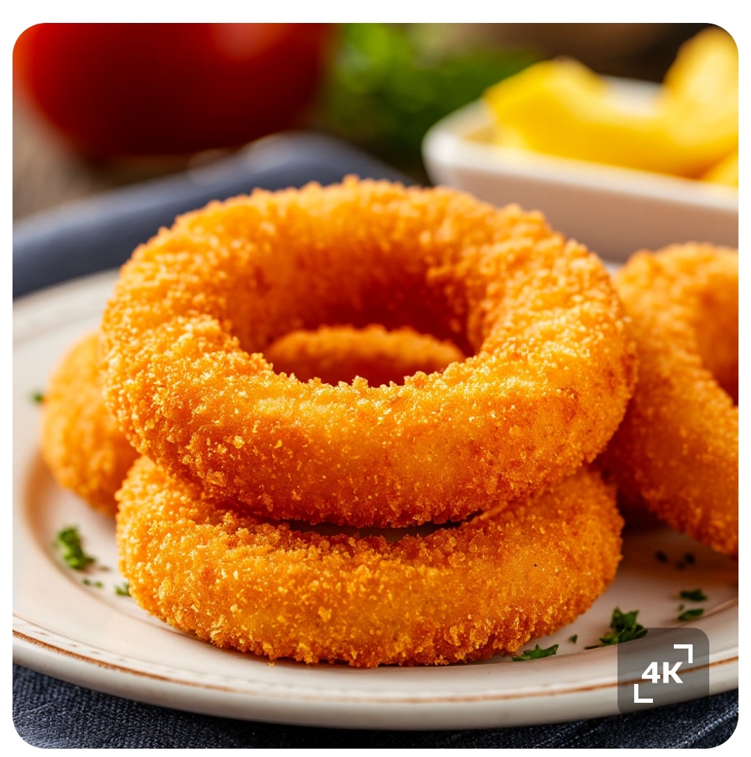 Жареные луковые кольца в панировке – это популярная закуска, которая отлично подходит как для семейного ужина, так и для подачи на праздничный стол. Они получаются хрустящими снаружи и нежными внутри, сочетают аромат лука с золотистой корочкой. Ниже представлен подробный рецепт приготовления луковых колец в панировке. Ингредиенты: - Крупные репчатые луковицы – 3-4 штуки - Мука пшеничная – 1 стакан - Яйцо – 2 штуки - Молоко или вода – 150 мл - Панировочные сухари – 1-1,5 стакана - Соль – 1 чайная ложка - Черный молотый перец – по вкусу - Паприка или чесночный порошок (по желанию) – ½ чайной ложки - Растительное масло для жарки (подсолнечное или рафинированное) – около 500 мл Процесс приготовления: 1. Подготовка лука Для начала очистите лук от шелухи и нарежьте его кольцами толщиной около 1 см. Желательно выбирать крупные луковицы, чтобы кольца получились достаточно большими и удобными для панировки и жарки. Разделите кольца на отдельные слои, чтобы было легче их обвалять в панировке
