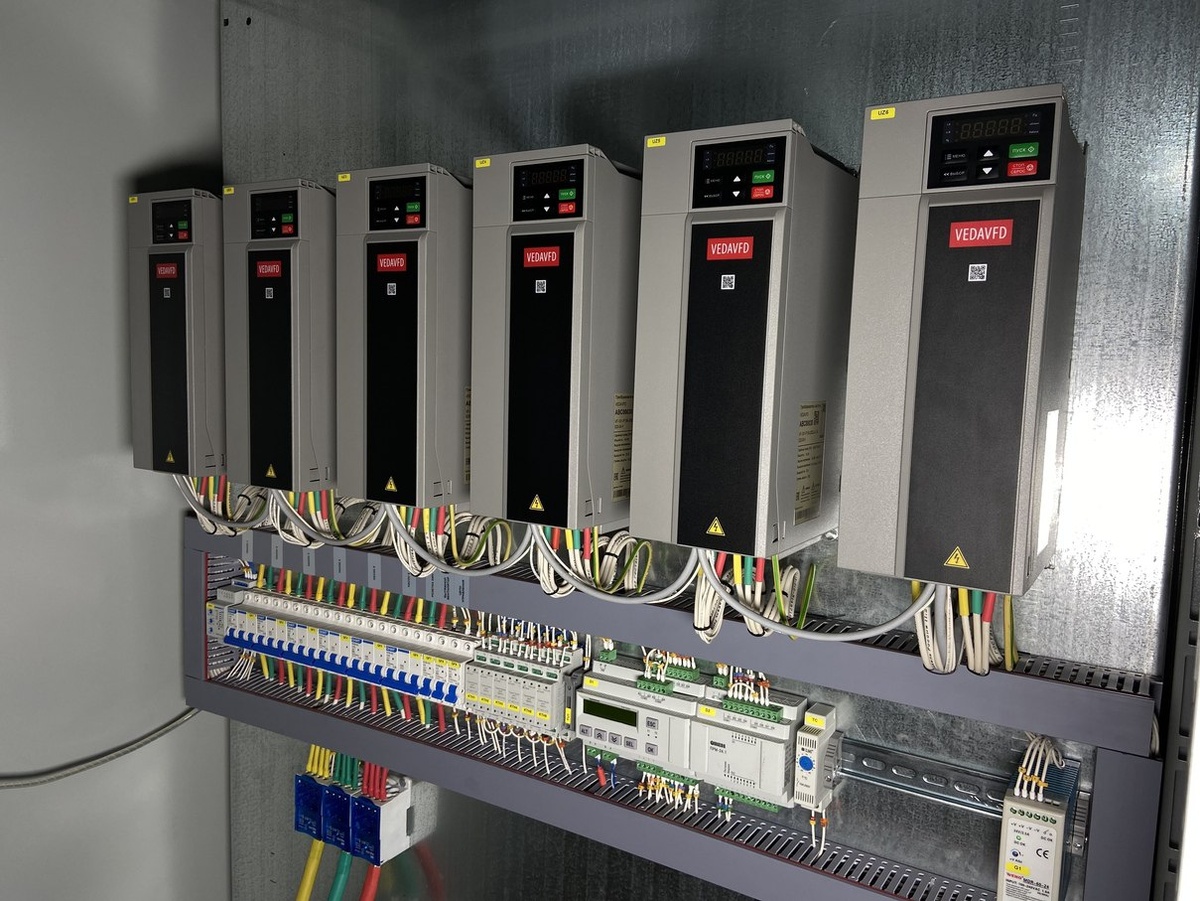 Модернизация системы водоснабжения пос. Байкалово Наш партнёр — ООО «АКВАТЕРМ» — завершил проект по модернизации насосной станции второго подъема в посёлке Байкалово (Свердловская область). Команда осуществила поставку и пусконаладку насосного оборудования и шкафов управления. 🔧 Что сделано: • смонтирована насосная установка второго подъёма водоснабжения; • установлен шкаф управления с индивидуальными преобразователями частоты на каждый насос. ⚙️ Технические фишки системы: • преобразователи частоты VEDA VF-101 мощностью 15 кВт — для гибкого регулирования работы насосов; • панель оператора VEDA HMI — удобный интерфейс для контроля оборудования; • диспетчеризация по протоколу Modbus RTU — удалённое управление и мониторинг. ✅ Результаты: • надёжное водоснабжение со стабильным давлением; • бесперебойная подача воды; • экономия электроэнергии за счёт частотного управления двигателями.