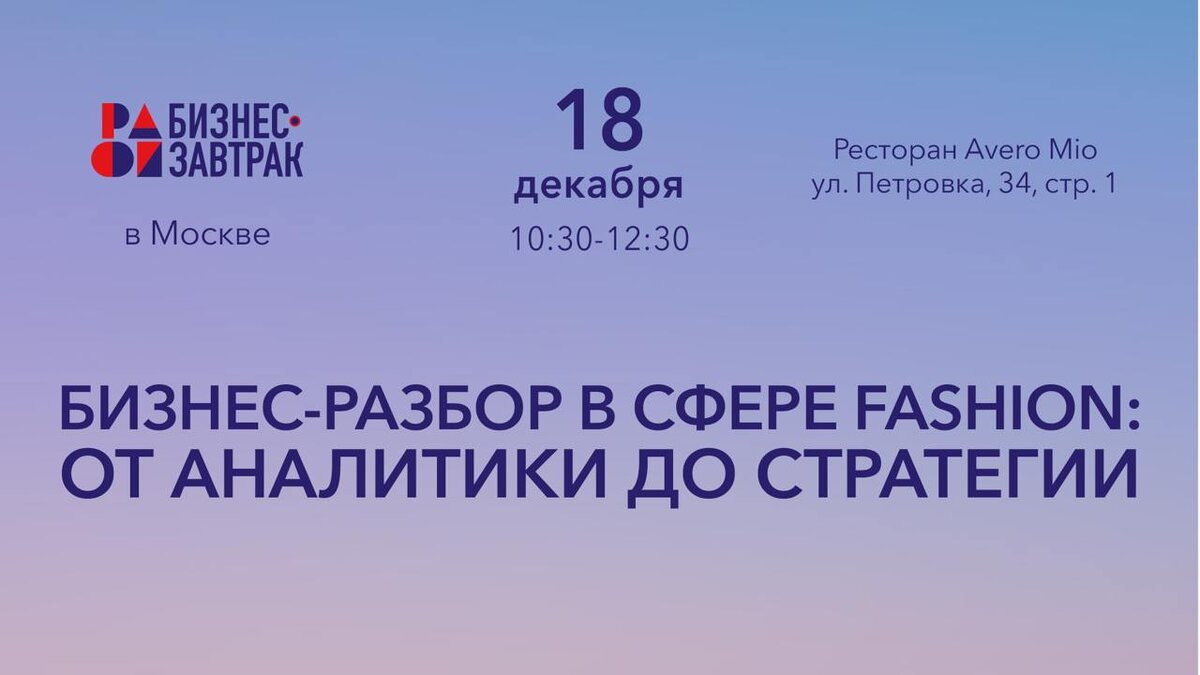 ⁉️ Где бренды находят решения, а не слушают лекции 18 декабря в Москве РАФИ проведёт приватный бизнес-завтрак для fashion-брендов и фабрик лёгкой промышленности. Почему этот формат действительно работает? Здесь не будет лекций и презентаций. Никакой теории — только работающие решения: ↪️ вы задаёте вопросы и озвучиваете свои задачи; ↪️ рассказываете о кейсах и проблемных точках; ↪️ эксперты по маркетплейсам, производству, коммуникациям и маркировке дают точные, практичные рекомендации прямо на месте. Эксперты бизнес-завтрака: 🔴 Мария Трифонова, руководитель направления по развитию партнёров Lamoda. Расскажет, как эффективно развивать собственный интернет-магазин через сервисы маркетплейса (склад, доставка, колл-центр и др.), а также разберёт ценовые стратегии и работу с ассортиментом. 🔴 Александр Цатря, глава отдела продаж компании-интегратора GetMark. Специалист в вопросах цифровизации легкой промышленности расскажет о требованиях маркировки в 2026 году и даст практические