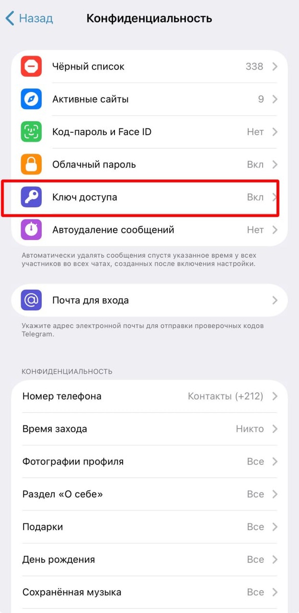 НОВЫЙ ВХОД В ТЕЛЕГРАМ Теперь в Телеграм можно заходить по ключам доступа (Passkeys). Больше никаких кодов из СМС, которые вечно задерживаются или вообще не доходят из-за блокировок. Как настроить (делай прямо сейчас): - Открывай Настройки → Конфиденциальность → Ключи доступа (Passkeys). - Генерируй ключ и сохраняй в менеджере паролей (на Apple это вообще нативно вшито в систему). Если пункта нет — просто обнови приложение. Passkey можно установить только с мобильного приложения на iPhone (возможно, на Android тоже есть). Зачем это нужно? Passkey — это криптографический ключ, который хранится прямо на вашем устройстве. Вы просто подтверждаете вход лицом (Face ID) или пальцем. Для нас с вами, кто занимается инвестициями и криптой, это critical feature: 1. Никакого фишинга. Если вы перейдете на поддельный сайт, телефон просто не предложит ключ. Обмануть систему невозможно. 2. Защита активов. Секретный ключ никогда не покидает устройство. Сервера хранят только публичный ключ, котор