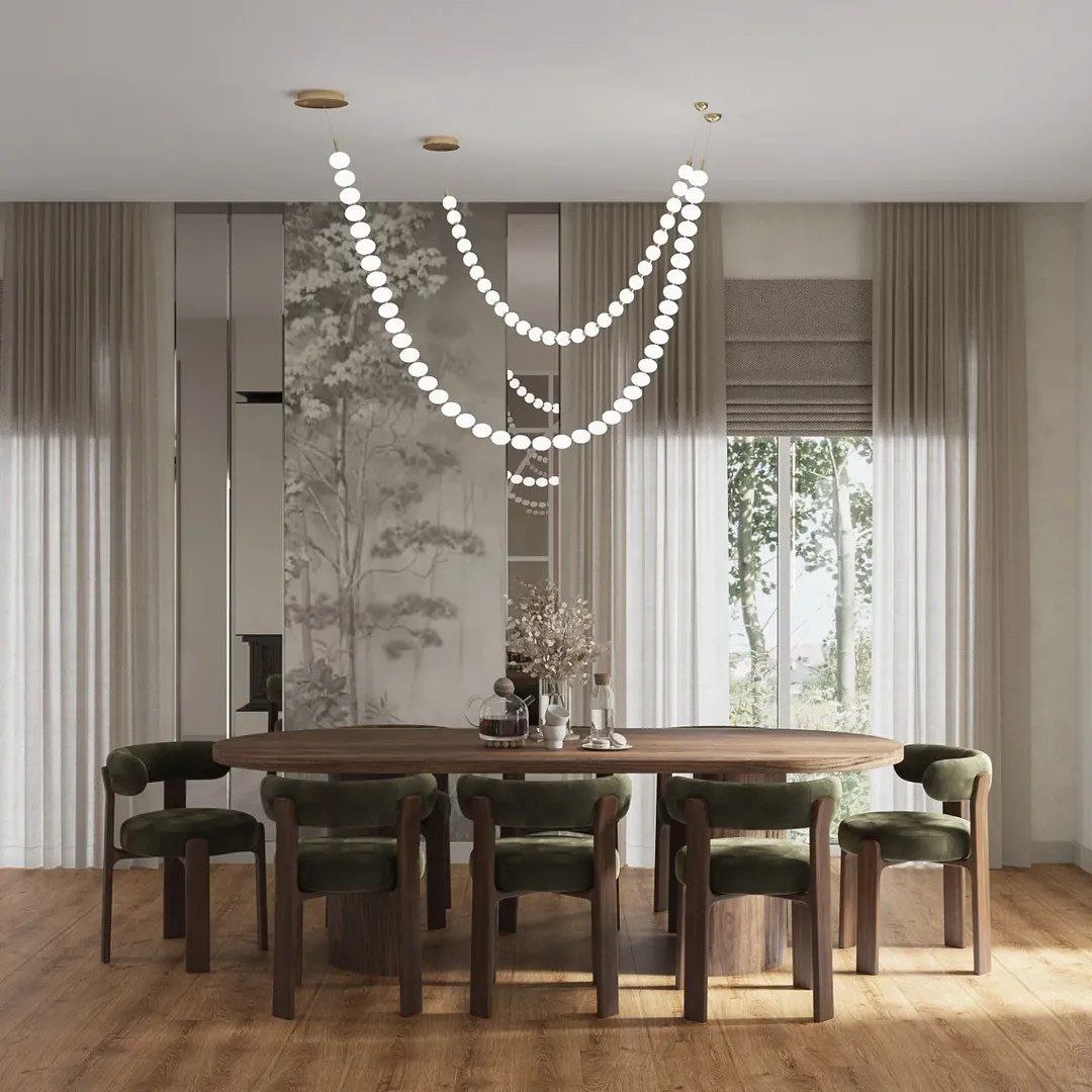 Гостиная - столовая в тёплых серо-бежевых тонах от дизайнера @jvinteriors_ Интерьер выполнен в современном стиле с акцентом на природные мотивы. Панно из коллекции #Atmosphere@affrescoru (арт. AF527-COL2) с рисунком туманного леса придают интерьеру уют и природной гармонии. - Посмотреть фрески, панно, обои и ткани можно в нашем интернет магазине. 📞 8-800-555-31-51 📨 Salon@affresco.ru 🌏 affresco.ru ⏰ Срок изготовления от 5 раб дней 🚀 vk.com/affrescoru ✈️ https://dzen.ru/id/5f710c51fe660a4af44007cb - #affrescoru #affresco #аффреско #фрески #обои #фотообои #обоидлястен #дизайнинтерьера #wallpaper #mural #фрескиназаказ #affrescoruвинтерьере #wallart #muralart #designinterior #настенныеобои #wallmural