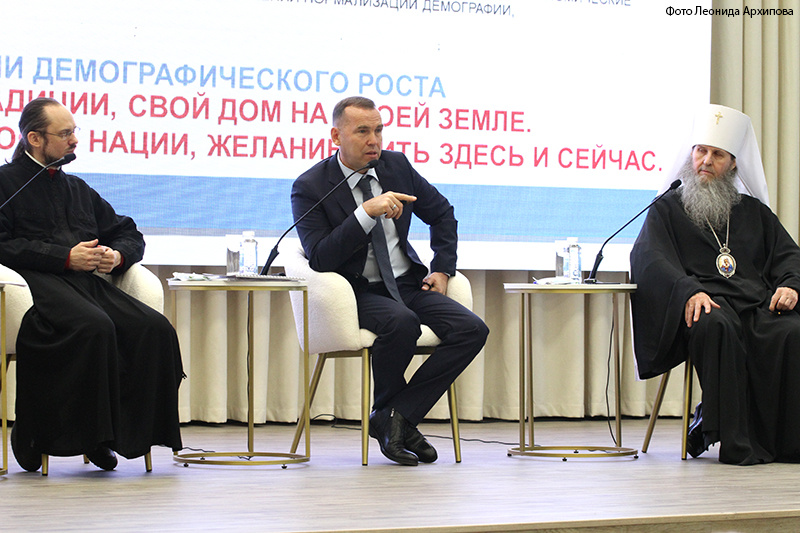 Педагог и ученый, телеведущий телеканала «СПАС» диакон Сергий Галиев в своем докладе о демографии буквально повторил тезис губернатора о том, что малоэтажное жилье, жизнь в своем доме на своей земле больше способствуют расширению семьи, чем жизнь в многоэтажных домах.