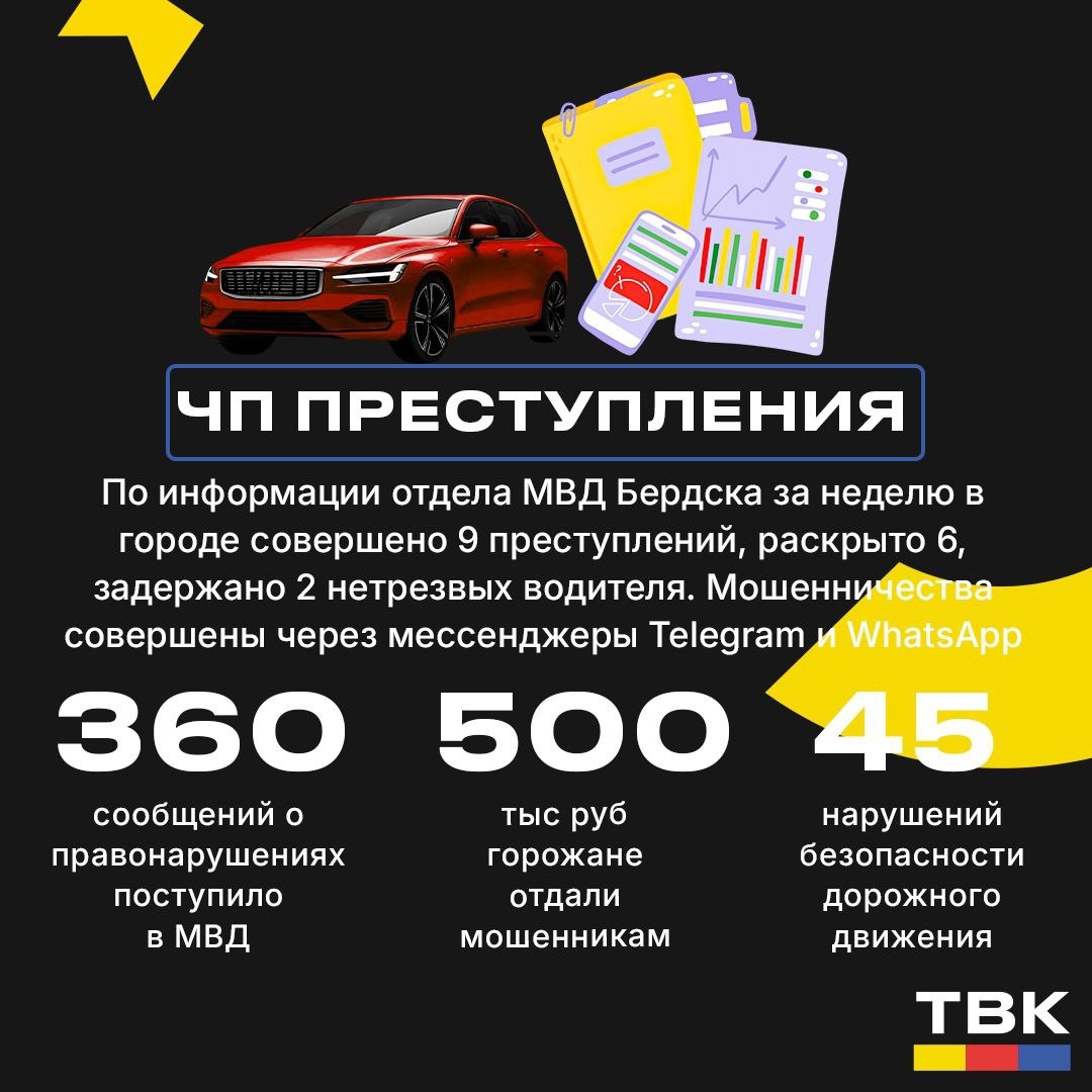 О происшествиях и преступлениях с аппаратного совещания в Бердске в инфографике от ТВК. Подробнее в нашем сюжете. #инфографика_ТВК #преступления #мошенничество