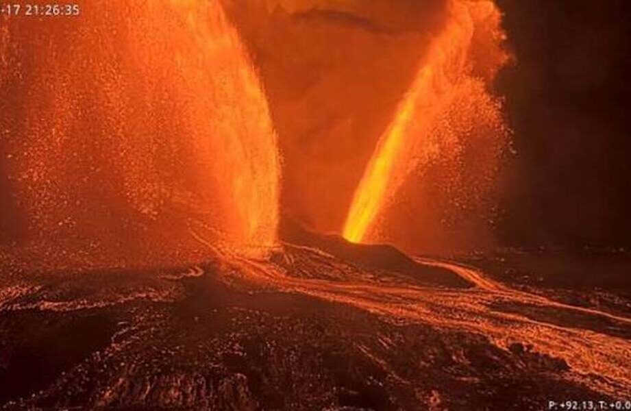 Вулкан Килауэа показал уникальное шоу: три фонтана по 150 метров высотой