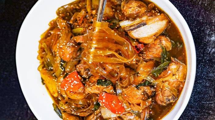 Всем привет! Сегодня познакомлю читателей блога с корейским блюдом. Тушёная курица с овощами, пикантная, сладко-острая, пряная с чесночным вкусом. Стеклянная лапша, картофель, морковь и лук, впитавшие в себя весь аромат мне нравятся не меньше, чем сама курица.