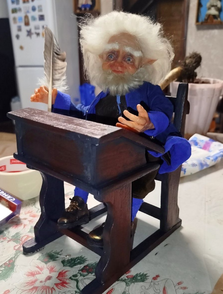 Товарищи, давайте отвлечемся немного от войны и политики. Майору нужен совет. Докладываю обстоятельства. Выходим недели две назад с Жанной на террасу. И вдруг старческий громкий и злой смех. Хе-хе-хе. Да такой с переливом и разными интонациями. Мне аж самому жутко стало. А Жанна побледнела. Всё, говорит, долепилась я леших и домовых, вот один из них и пришел в гости... Вот, кстати, последняя работа. За спиной вырванный с корнем цветок. Это Филина проказа. Эта черная бестия носится по дому и всё крушит. Там у мужчинки еще книга и чернильница будет. Ведь домовые, как выяснилось, рождаются уже старенькими. Этот мальчишка пишет письмо Деду Морозу с заявкой на Новый год. Но чего-то меня опять не в ту сторону повело. Рекламщик, блин. ...Выглянул я осторожно за угол. А по льду пруда птица ходит. Показалось, что селезень. Но... нет. Уточка. И стала она, значит, около нас жить. Сначала плавала в мелиорационном канале за домом (там вода не успела замерзнуть). А как лед на пруду растаял, по