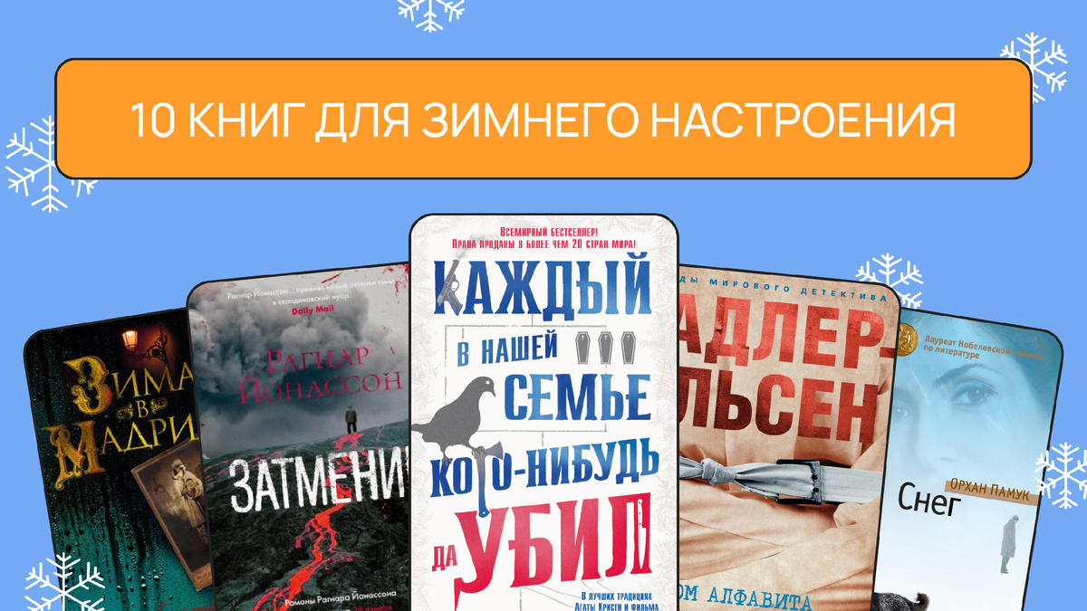 Есть особые зимние вечера, когда не хочется ни писать, ни работать и даже ни быть продуктивным, а просто нырнуть в историю как в теплый плед. Снег ложится за окном, чай остывает слишком быстро, а мысль одна: «Хочу книгу, которая сделает мою зиму». Мы собрали 10 небанальных книг, которые создают атмосферу точно так же, как горячий шоколад, теплый плед после мороза и мягкий свет гирлянд. 1. «Затмение» — Рагнар Йонассон Журналистка приезжает в зимнюю Исландию расследовать исчезновение, но находит больше загадок, чем ответов. Исландский нуар — это не просто книги, это целая температура. Холодная, колючая, но странно уютная. 2. «Зима в Мадриде» — К. Дж. Сэнсум Английский агент отправляется в послевоенный Мадрид зимой, где каждый шаг — игра на выживание. Зима здесь становится состоянием мира: тихая, медленная, тронутая холодом истории. 3. «Каждый в нашей семье кого-нибудь да убил» — Бенджамин Стивенсон Семейство писателей собирается в уединенном снежном домике на Рождество — и кто-то, разу